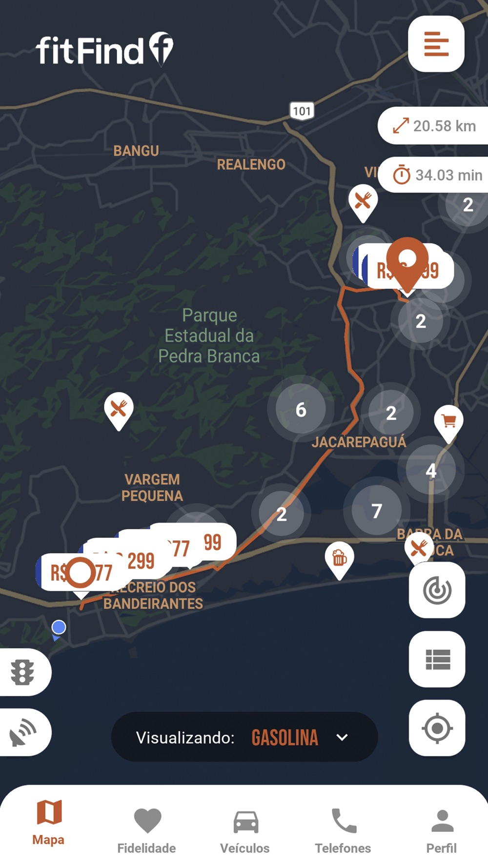 fitFind como uma ferramenta de planejamento para a sua viagem. Com informações sobre o trajeto: distância, pedágios, quantidade de postos, combustível com melhores preços, telefones úteis. Além disso, o usuário poderá cadastrar seus veículos e ter um hub de informações importantes para o dia a dia de um motorista: contatos de serviços, calendário de rodízios nas capitais, alerta de recall da fabricante, informação sobre troca de óleo, calibragem dos pneus, entre outras.