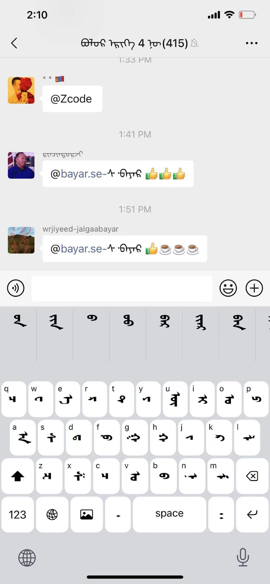 3. Type Mongolian script. 选择此键盘之后写蒙古字。
