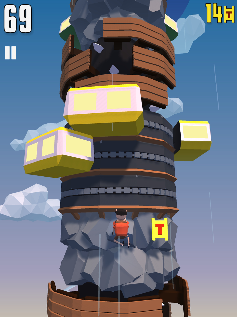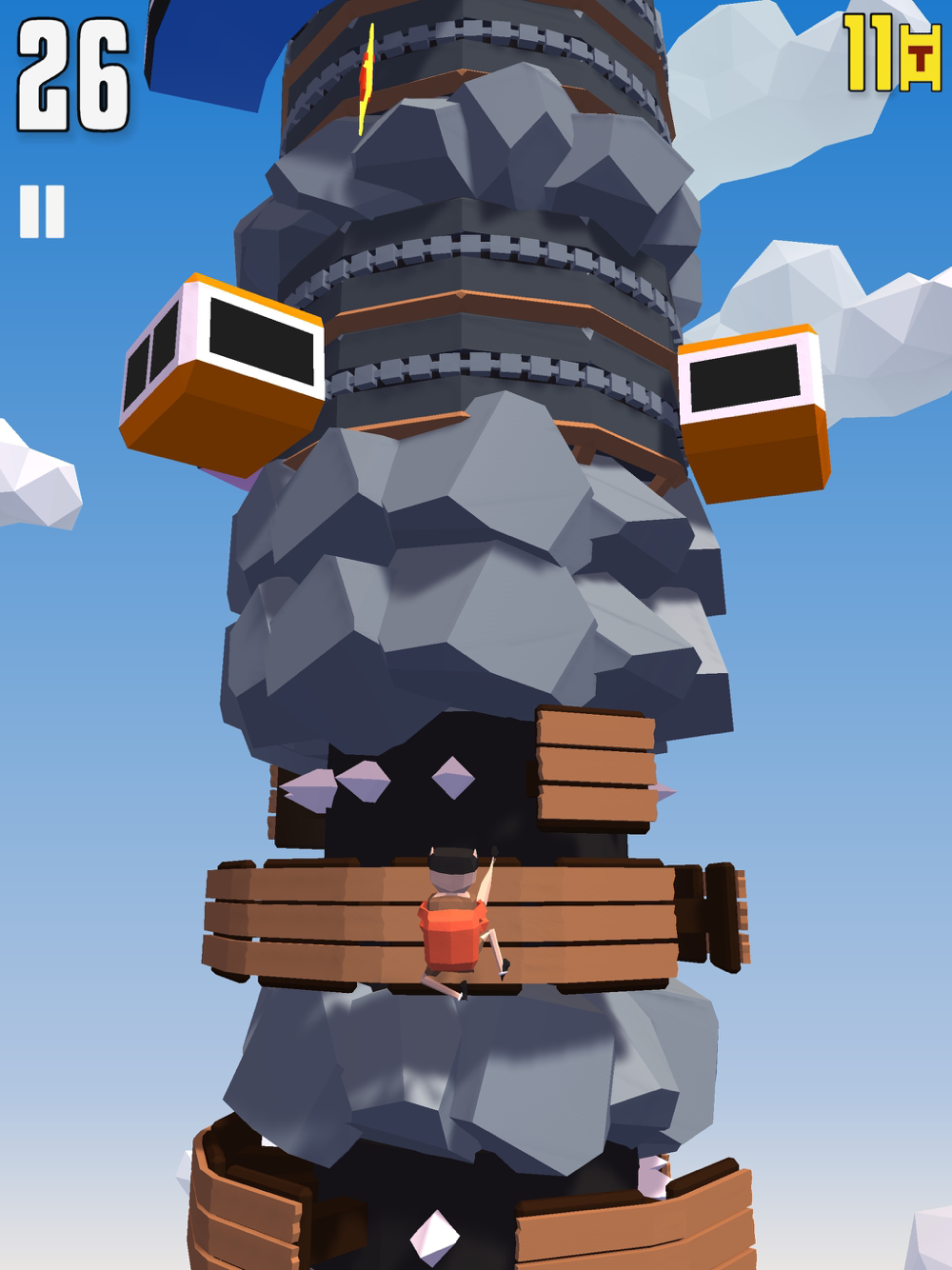 Spin Tower is an endless arcade climbing game where you climb up a rocky mountain tower.