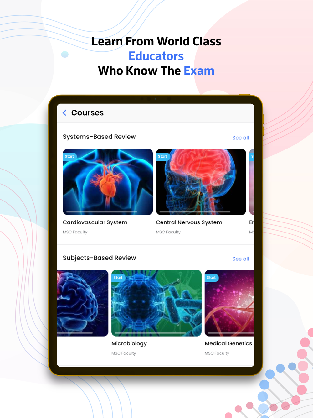 Learn medicine from expert faculty who know the exam. Review high-yield materials including eBooks, video series, question bank, case studies, and flashcards to help you succeed. Connect and interact with medical students and professionals from around the world. Create your profile, compete on leaderboards, and earn coins and gems that can be exchanged for 1-on-1 tutoring sessions and MSC merchandise.
