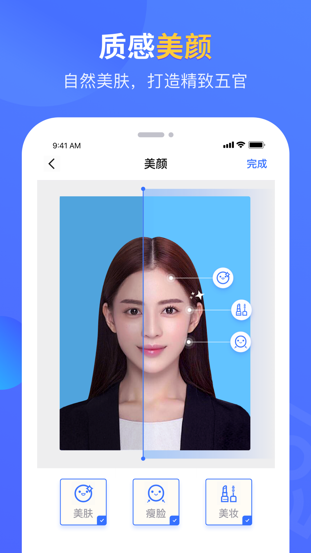 自然美颜:人像识别高级算法,磨皮美白瘦脸自动搞定;