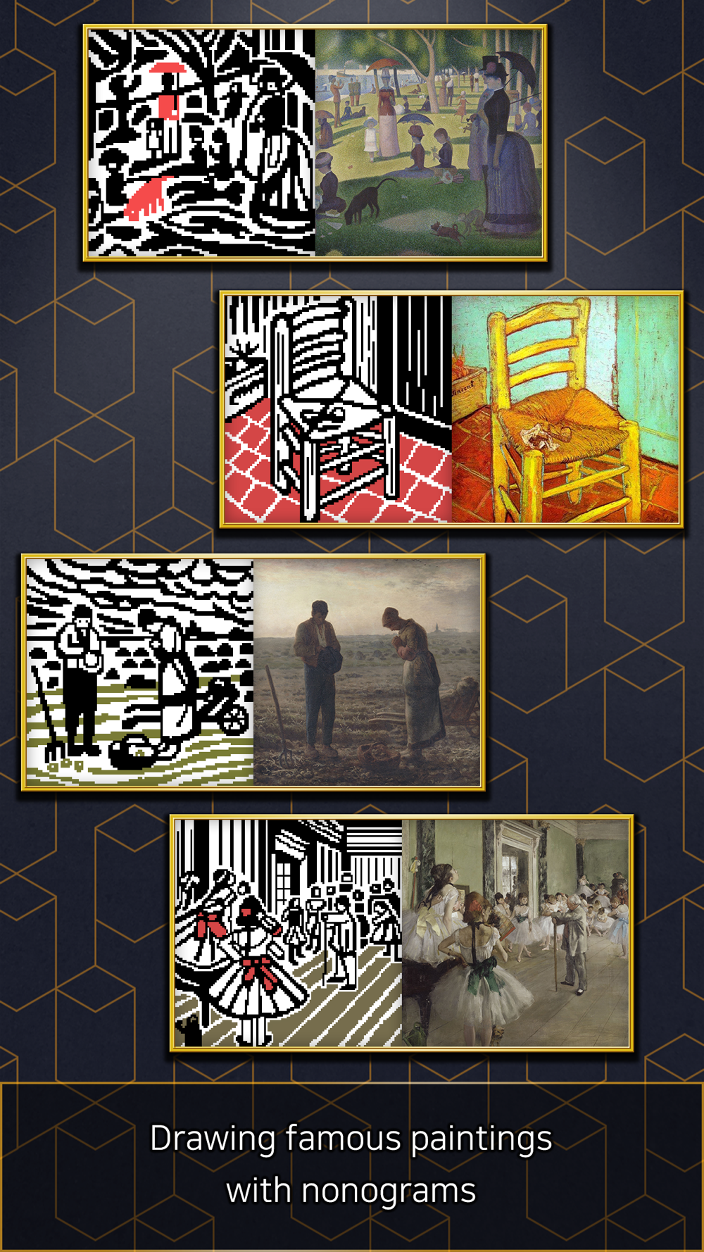 Draw a famous masterpiece in a nonogram. I'm so moved.