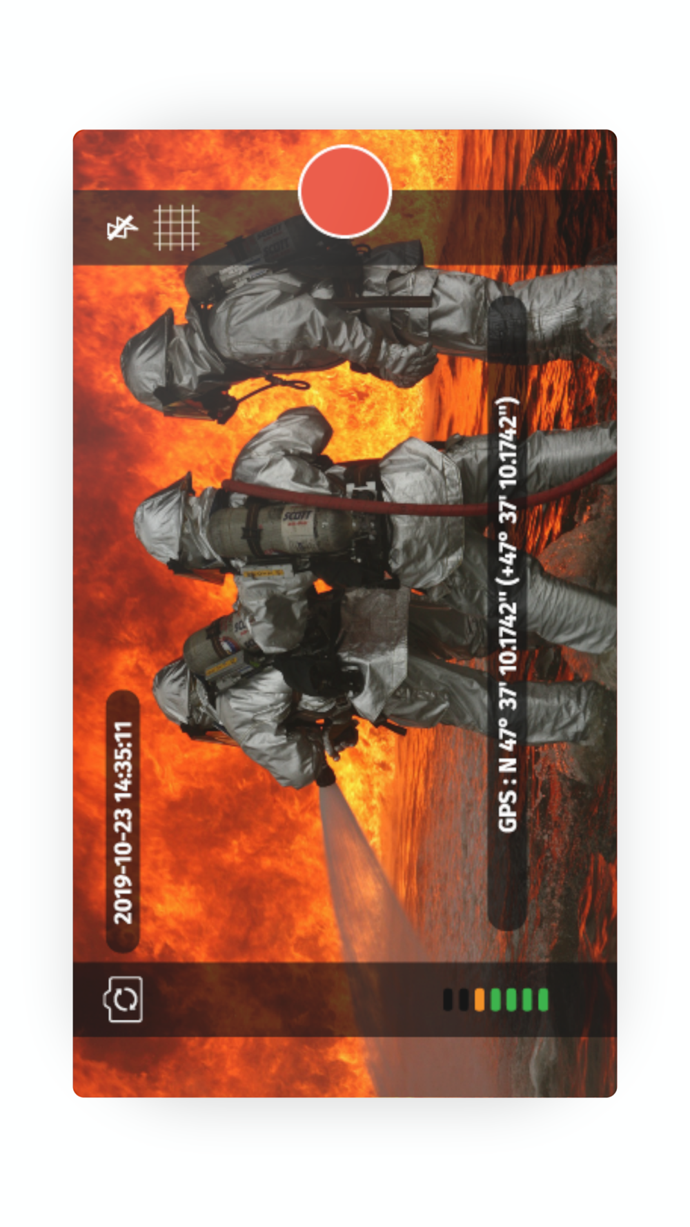 Diffusez l'événement en direct à l'aide d'un smartphone habituel, n'importe quel employé peut diffuser l'alerte en direct, il suffit de prendre son smartphone, de lancer l'application et d'appuyer sur le bouton LIVE.
