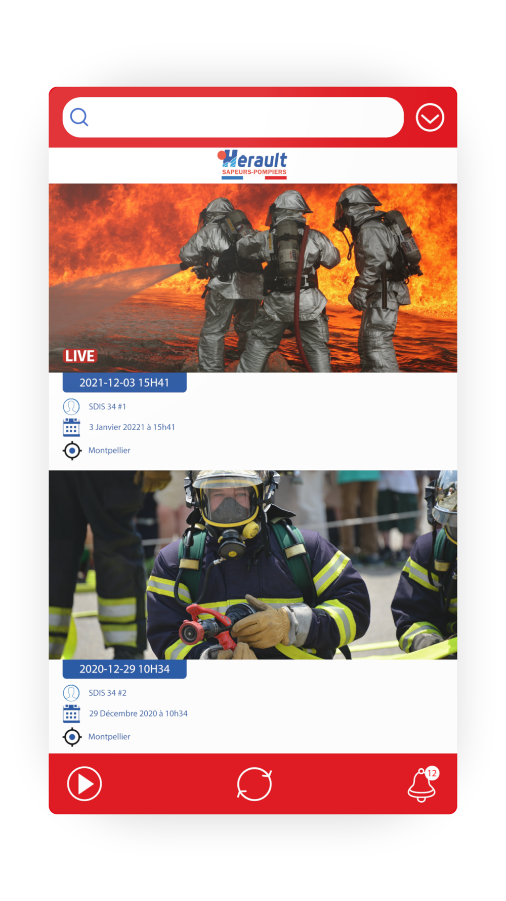 Application permettant de regarder en direct et replay les contenus notifiés par l'application SDIS34 LIVE.