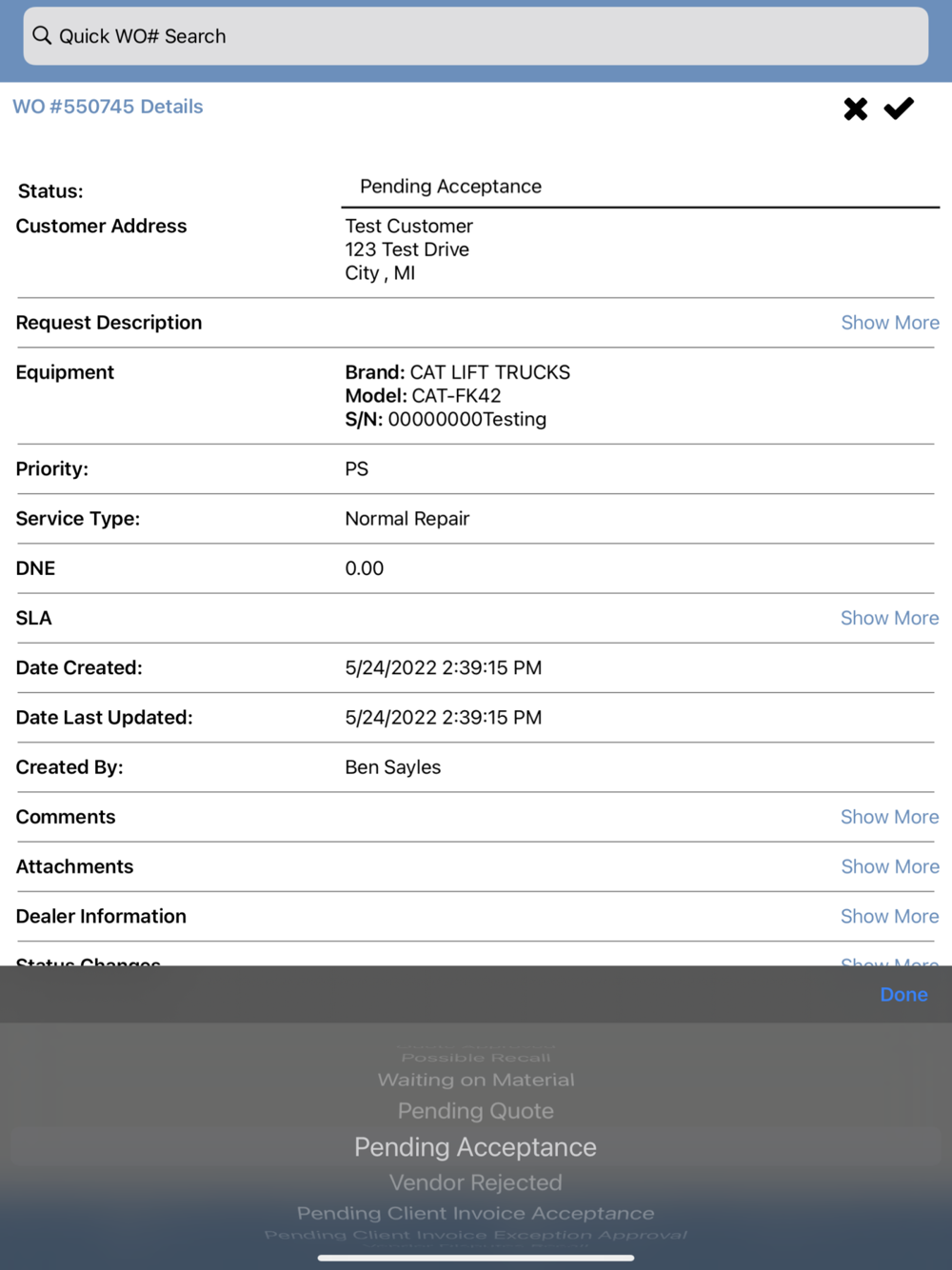 LTS Mobile is an application used to expedite the use of Lift Truck Solutions applications. Currently the supported applications include Service Dispatch creation of work orders.