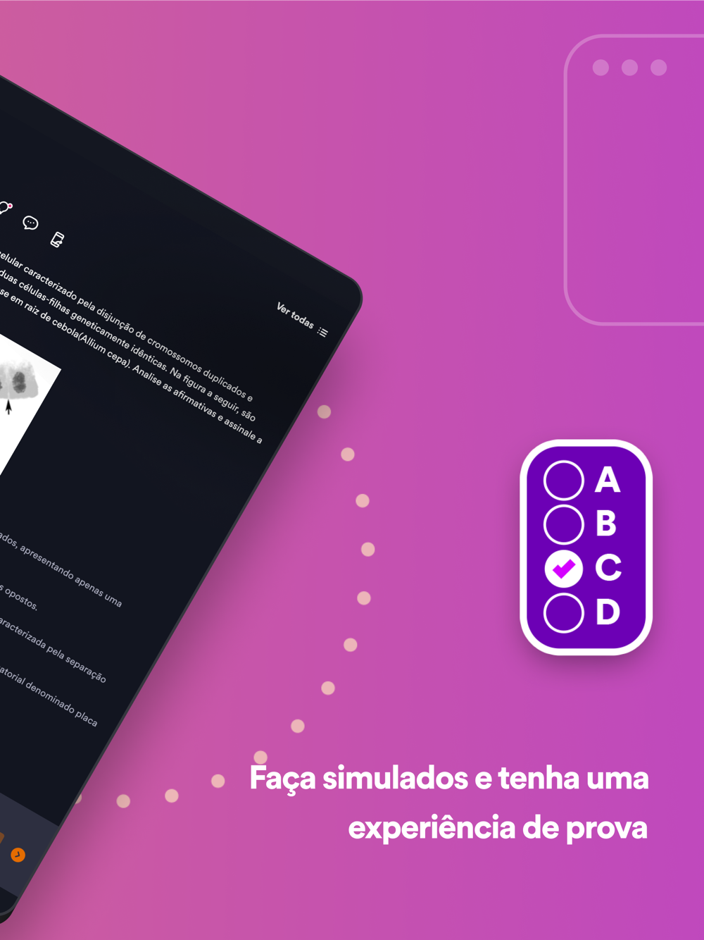 - Crie simulados e listas de questões e otimize seus estudos: Monte quantas listas e simulados quiser com filtros personalizados e dê um gás na organização dos estudos.