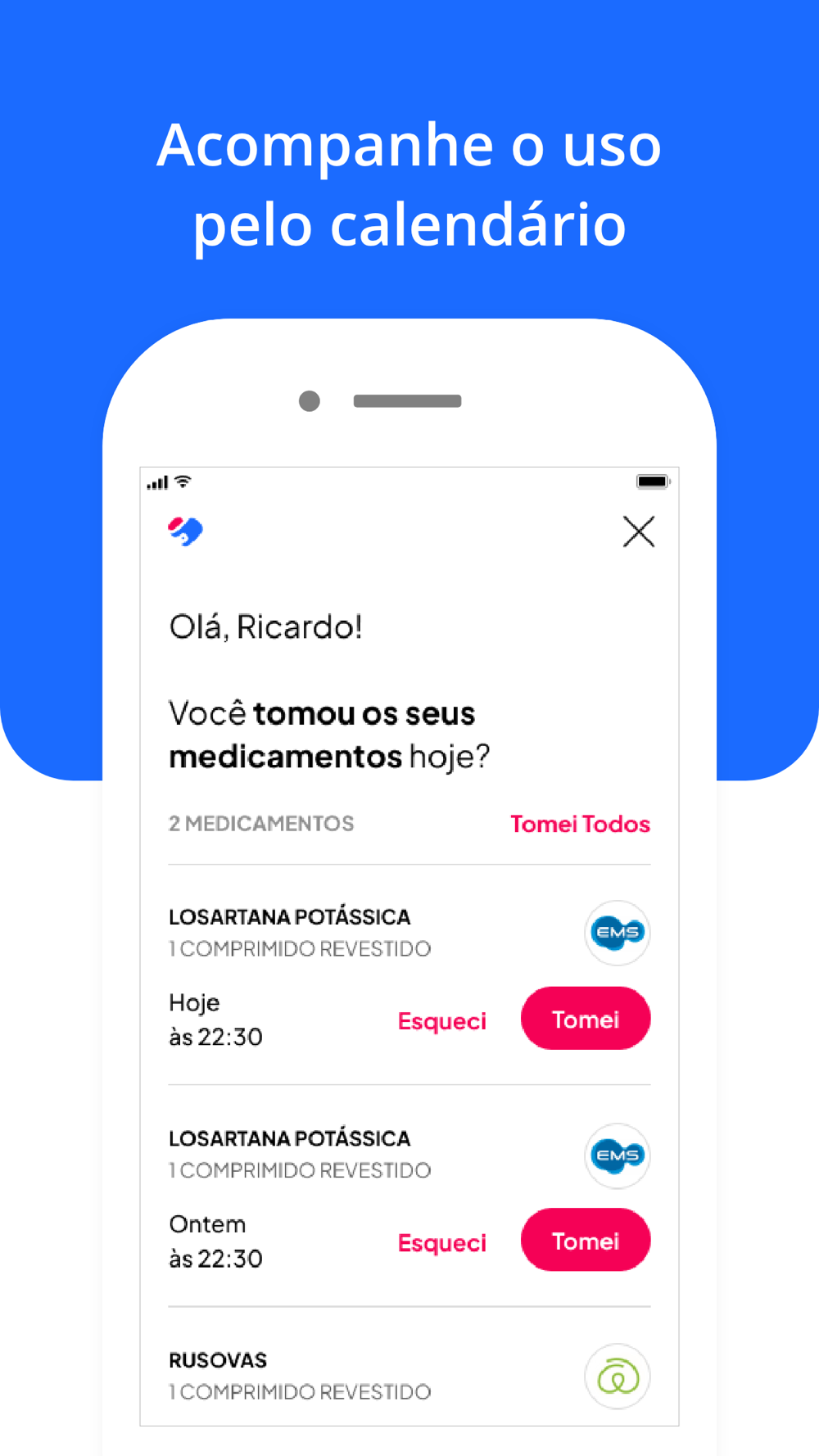 PRONTO, AGORA É TOMAR AS MEDICAÇÕES CONFORME PRESCRIÇÃO MÉDICA E NÃO ESQUECER DE MARCAR NO APP. VOCÊ PODE CHECAR COMO “TOMADO” UMA HORA ANTES ATÉ 12 HORAS APÓS. SE NÃO CHECAR NESSE PERÍODO, ELE SERÁ MARCADO COMO “PERDIDO”.
