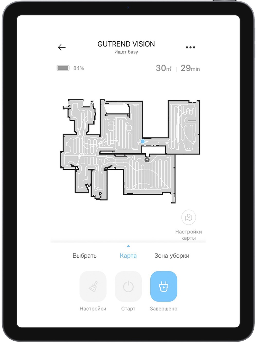 "Приложение позволяет программировать режимы работы и управлять роботом-пылесосом GUTREND VISION.