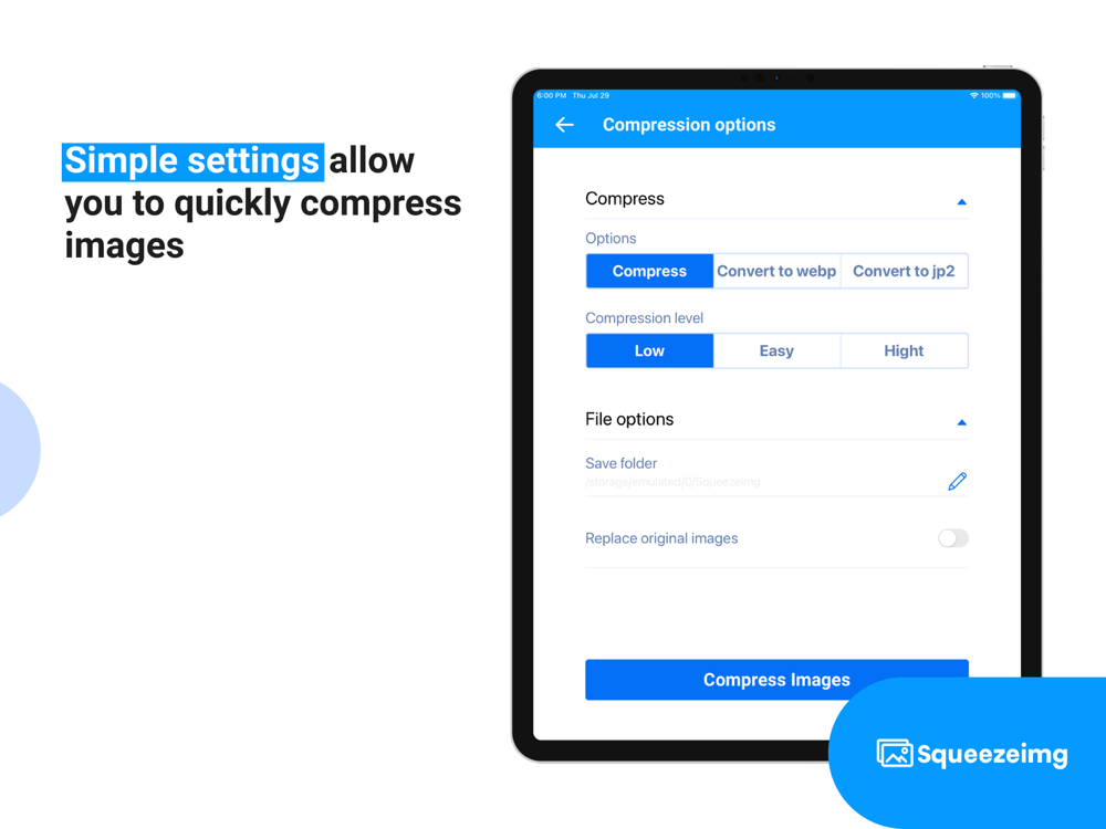 Squeezeimg helps you to easily optimize your images using fast image compression and conversion without any visible loss of quality.