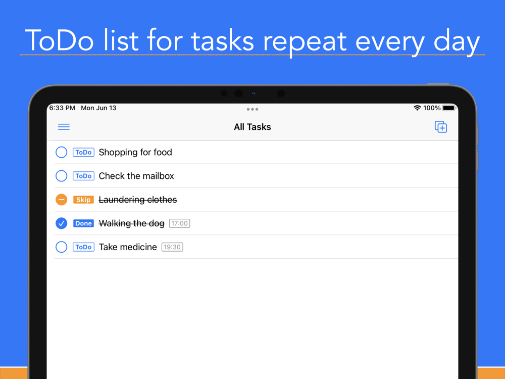 Register the tasks you repeat every day, such as taking medicine, walking the dog, buying groceries, etc., in this app's to-do list and prevent yourself from forgetting to do the task. This app will free you from the stress of managing tasks.