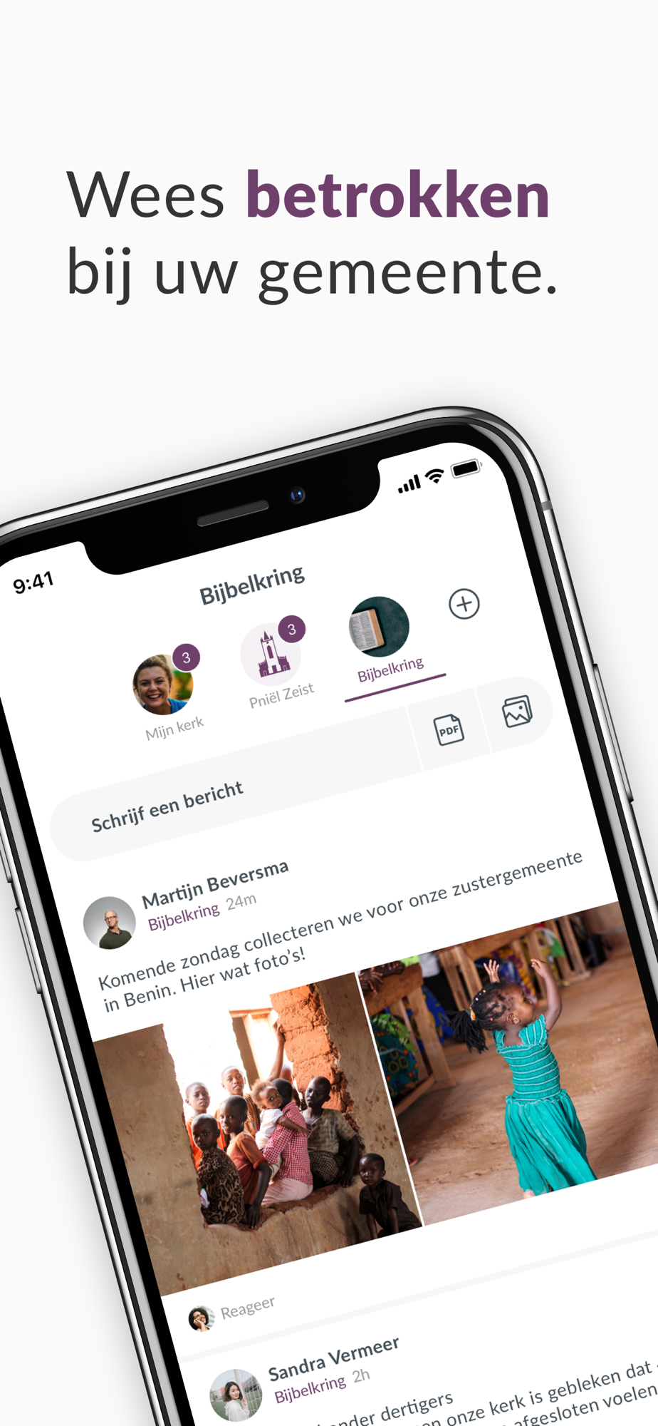 Dankzij onze unieke groepenstructuur helpen wij kerken beter te communiceren. Met de hele gemeenschap, maar ook onderling. U kunt zelf groepen toevoegen en mensen daarvoor uitnodigen. Een slimme timeline zorgt er voor dat iedere gebruiker persoonlijke en relevante informatie ziet.