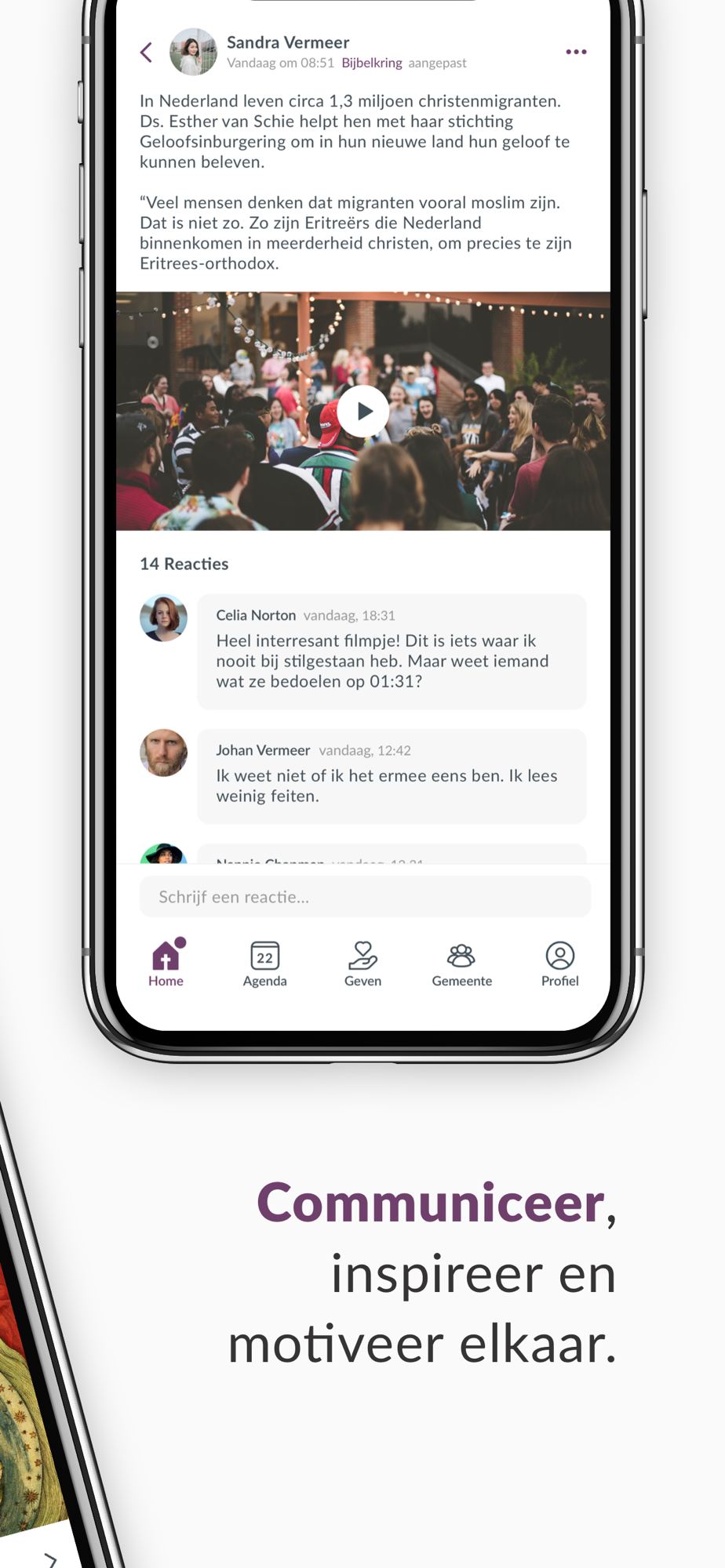Als gemeente willen wij betrokken zijn met elkaar, efficiënt de organisatie van de kerk onderhouden, elkaar ondersteunen en nog veel meer. Onze eigen mobiele app helpt ons hierbij!