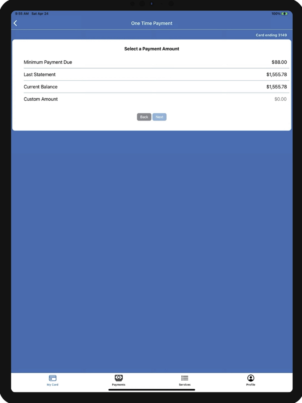 -View your pending and posted transactions or open a PDF of your billing statement right from the app.