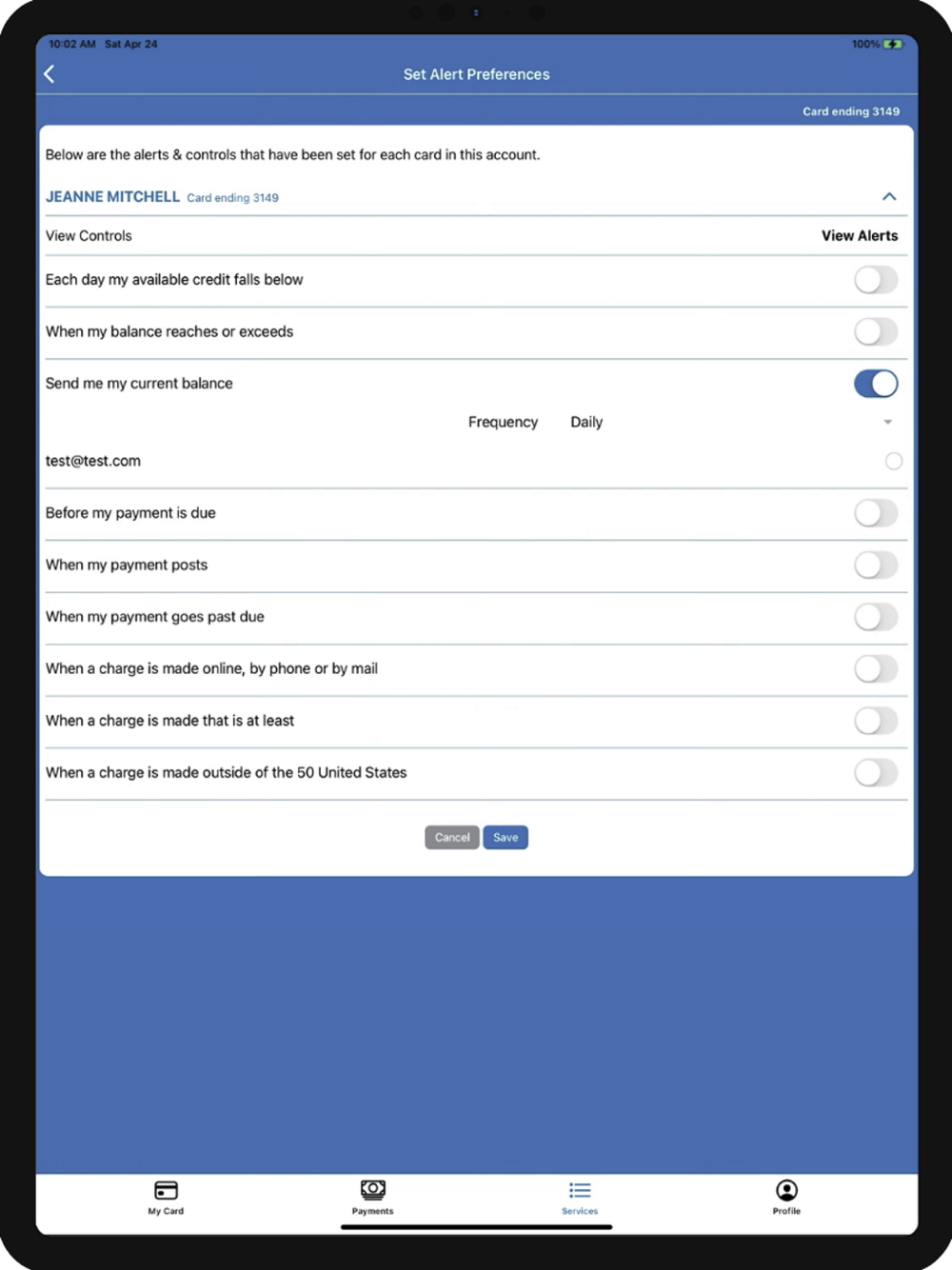 -Freeze or unfreeze your credit card to control the purchases that go on your card.
