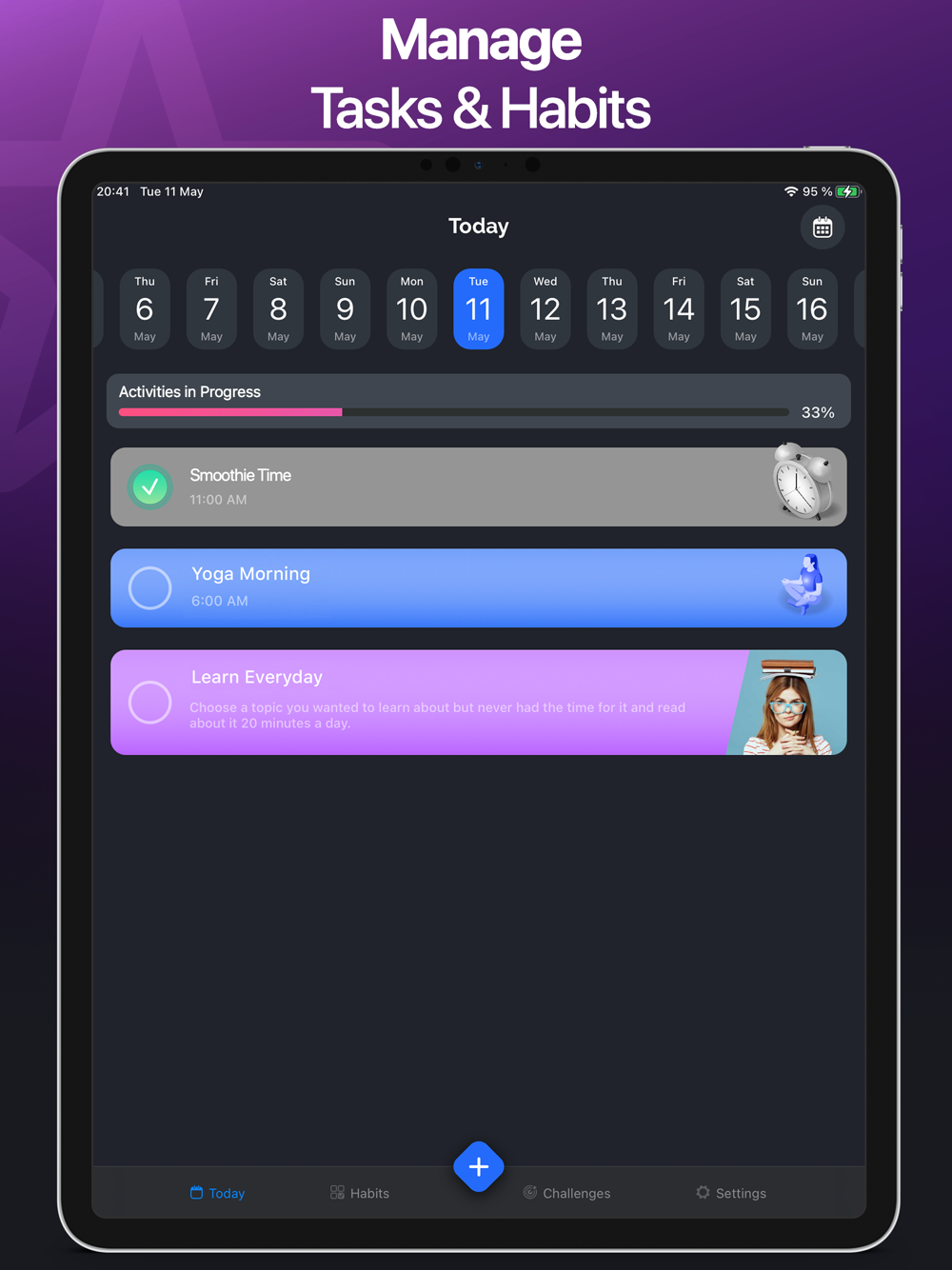- Challenges. Stay motivated and on track with guided tasks to improve and make your daily routine more productive.