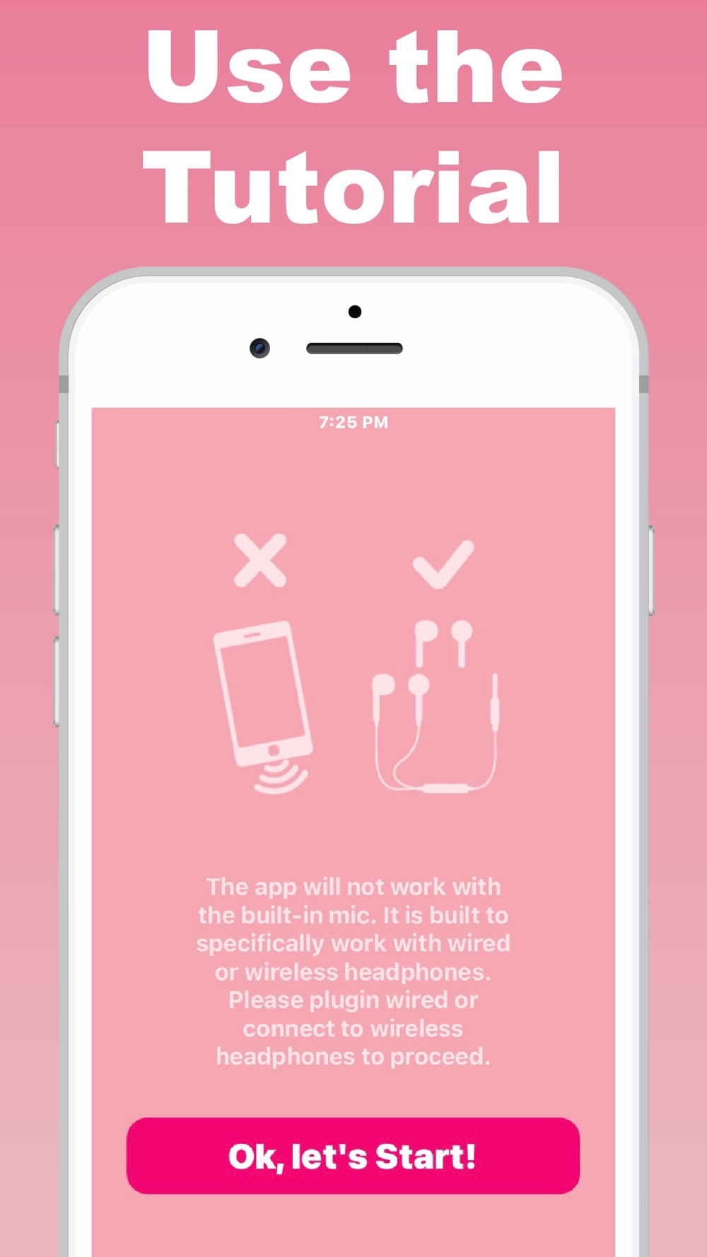 The app has an auto-configuration of audio frequency manipulation settings already built into the code. All you have to do is JUST PRESS THE BUTTON and follow the tutorial.