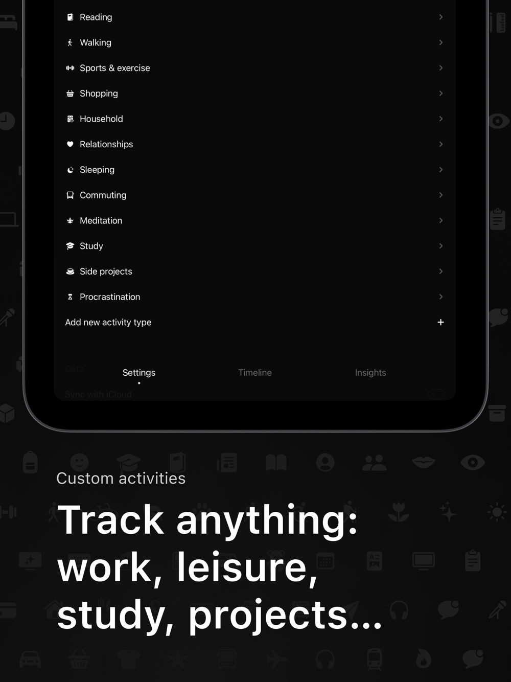 - Capture anything from focused work to leisure, exercise, and downtime.
