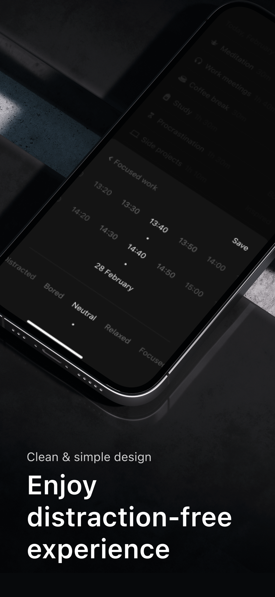 - Quickly track your activities and emotions to get a better understanding of how you're spending your time.