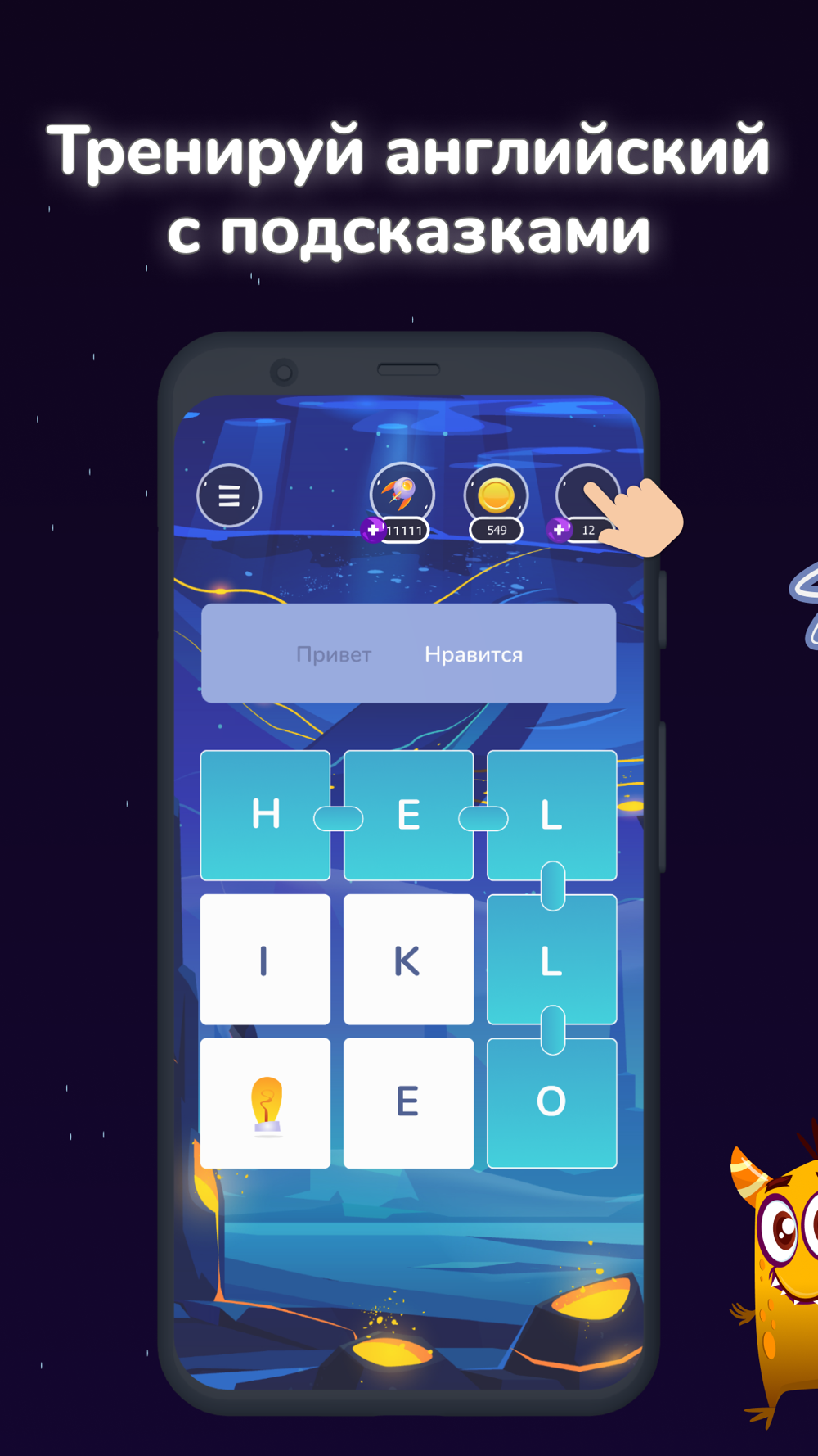 В этой фантастической игре-кроссворде ты увеличишь свой словарный запас и орфографические навыки, одновременно путешествуя по планете, проходя интересные ситуации, играя в филворды. Что может быть лучше, чем открывать для себя новый мир, изучая новые слова и расширяя свой словарный запас?