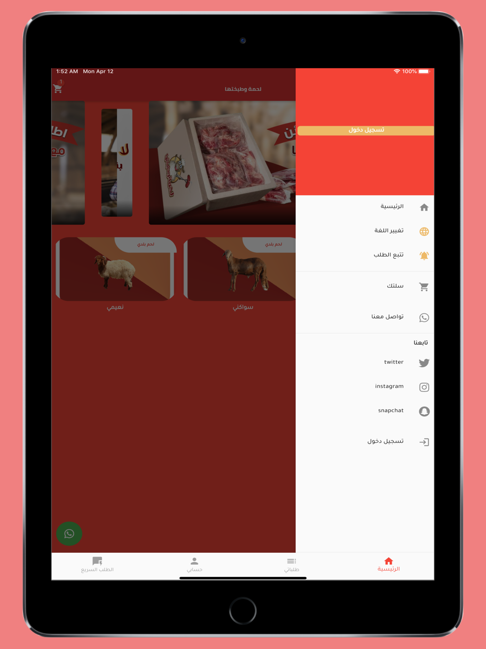 تطبيق لحمه وطبختها تطبيق يوفر للمستهلك اجود اللحوم المحليه الطازجه الى باب منزلك