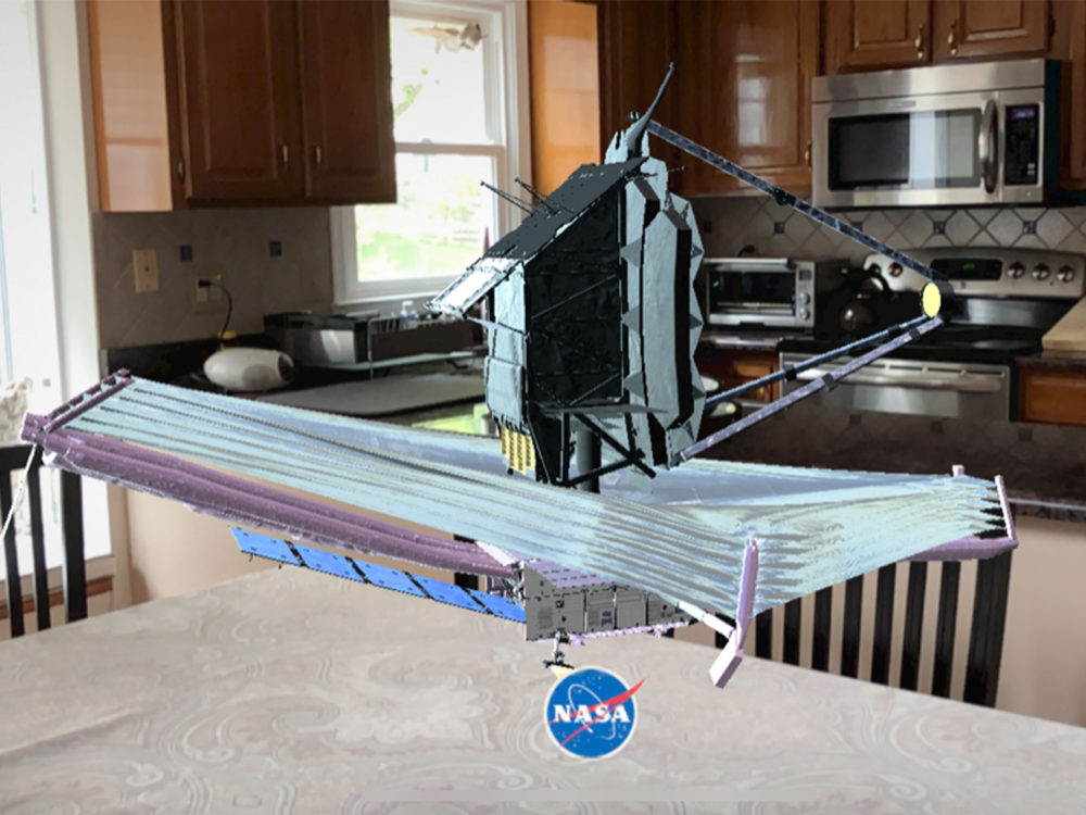 With NASA preparing to launch the new James Webb Space Telescope, there’s never been a better time to learn about this extraordinary mission. To get you ready, The Space Agency has developed a new augmented reality app for iOS devices, and once you get your hands on it, you’ll start seeing JWST everywhere. Using this cool tool, anyone with an iPhone or iPad can experience the world’s most advanced scientific instrument in just about any space you’d like, including your own. In augmented reality, you can place a full sized, virtual model of the Webb telescope in your own backyard. Or, if you want to see the telescope in a size that fits a smaller, real-world space like your classroom or workspace, you can adjust the size and virtually place it on your desk or kitchen table. Scale it, turn it, check out the parts of the great machine labeled and annotated as it appears to float in front of you.