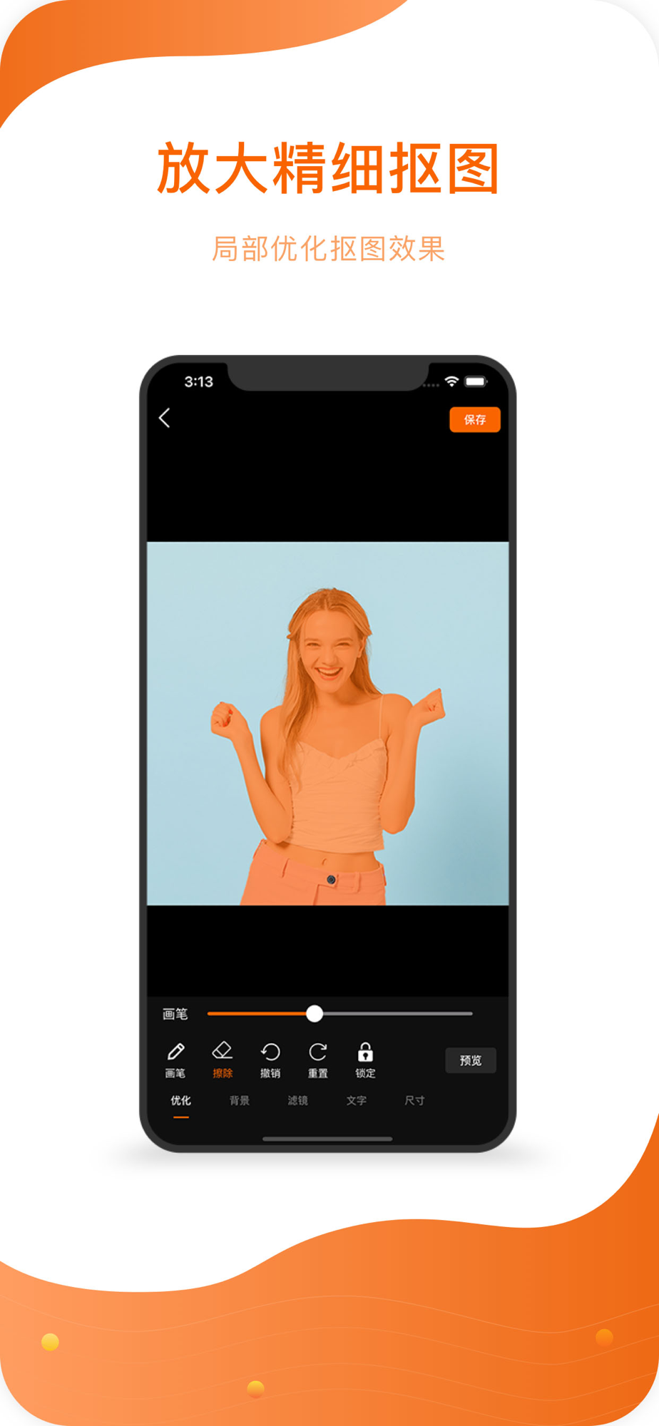 运用最新的AI技术,精确地识别目标中的人物,商品或者是物体,一键抠图,支持对目标对象更换背景,加滤镜,加文字,美化图片等操作,帮你轻松实现抠图,达到场景切换的完美效果