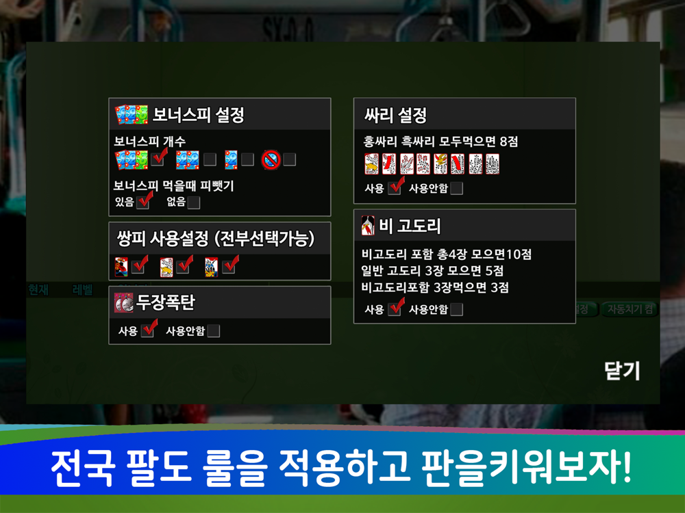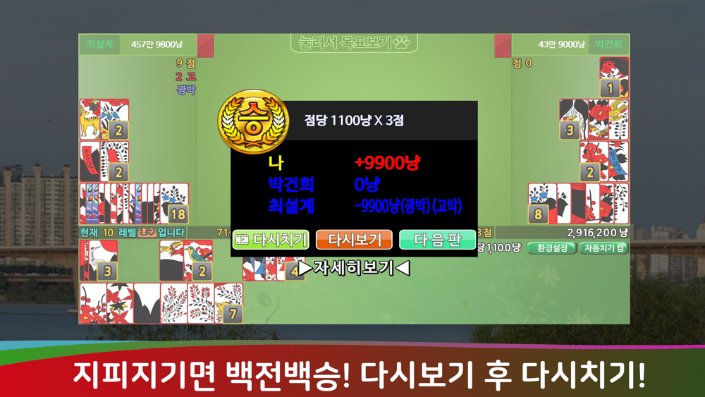 이때 상대 패도 전부 볼수 있으니 잘 기억해 두었다가 다시치기를 하여 역전을 할 수 있습니다.