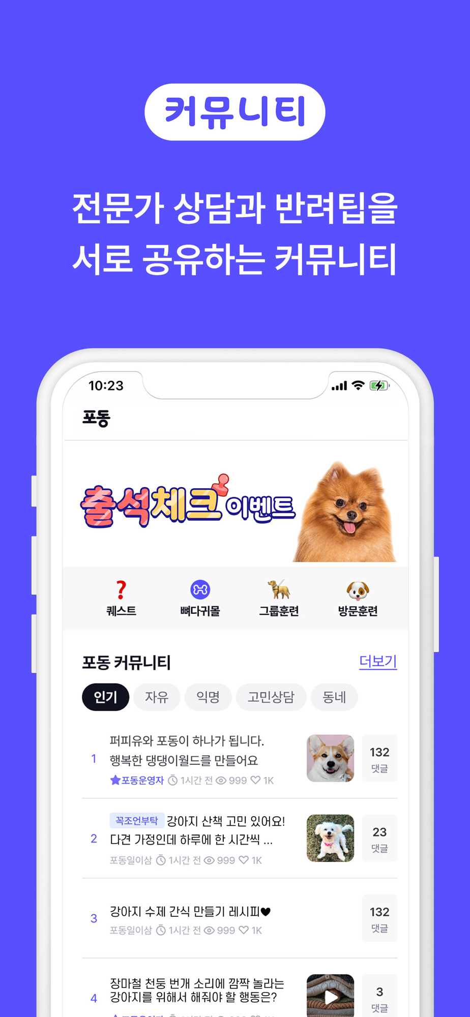 ■ [커뮤니티] 다른 반려가족들과 양육팁, 반려견과의 행복하고 슬펐던 경험을 함께 공유하고 소통해 보세요.