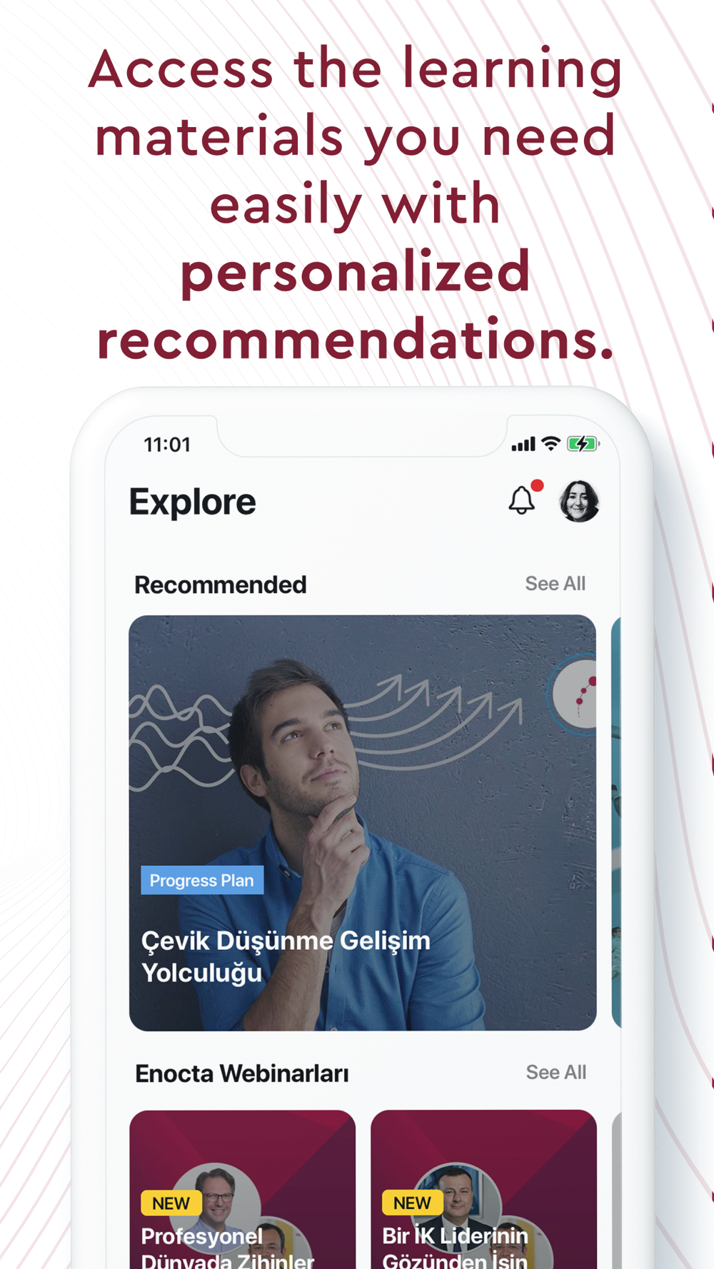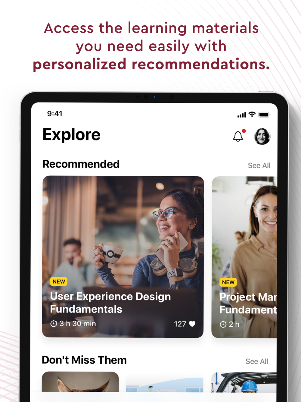 You can also discover the rich Learning and development catalogue of your company and start learning right away with personalized recommendations.