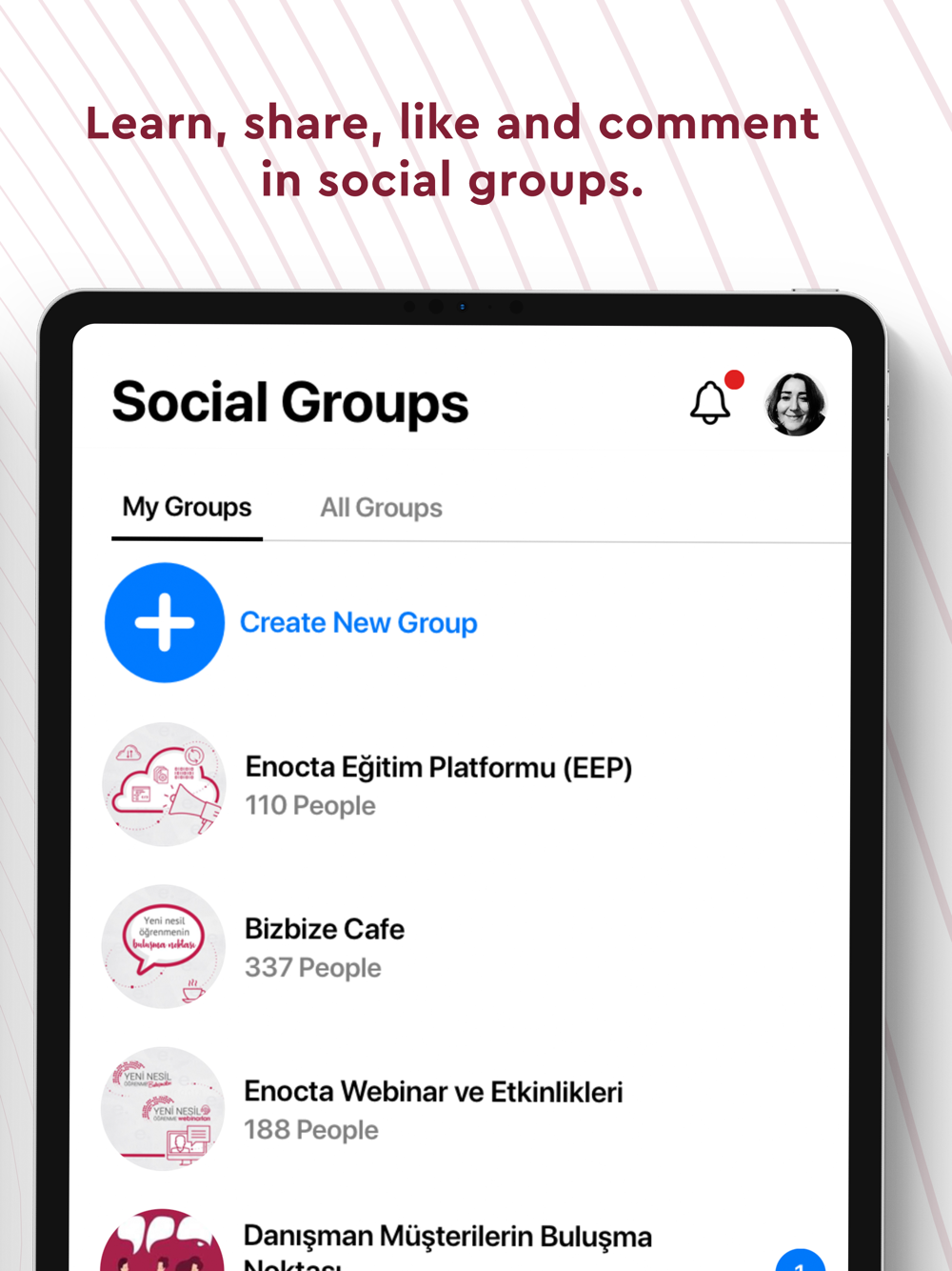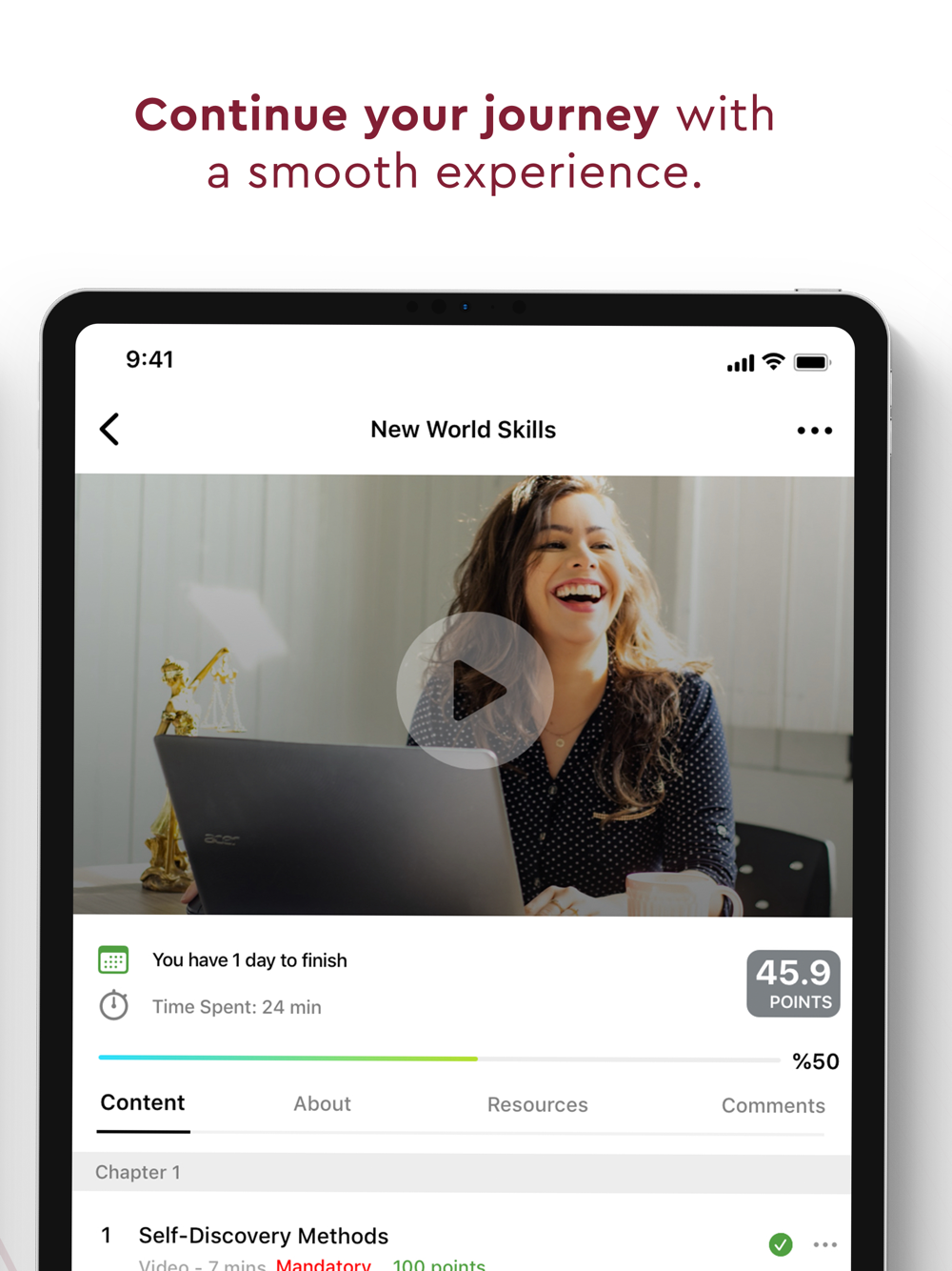 With this application, you can access all your courses and learning plans, download videos for offline view, answer surveys and exams, participate on the social groups available.