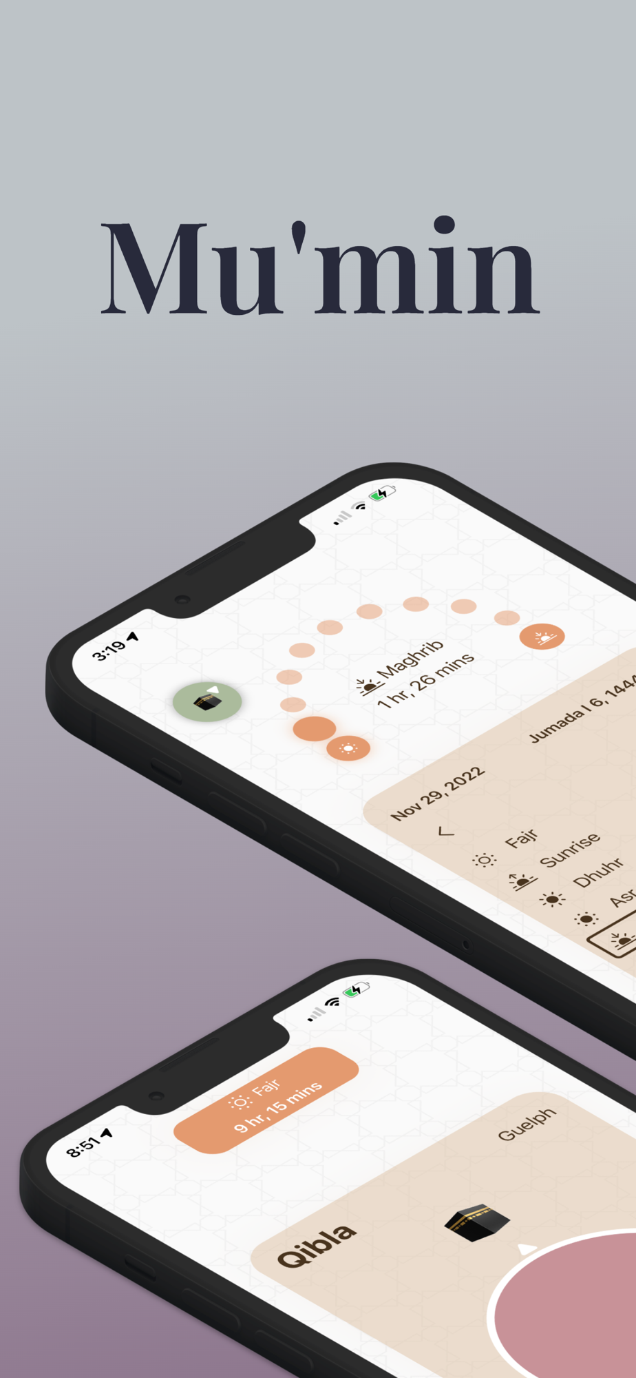 Mu'min is your solution to prayer times and other essential items that Muslims need on a day-to-day basis.