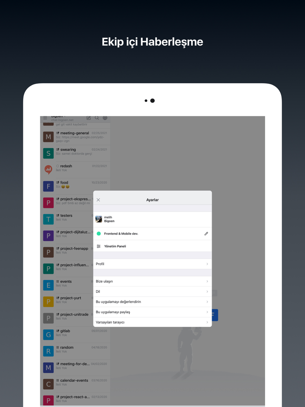 Bigoen Chat, Rocket.Chat alt yapısını kullanarak şirket içi iletişimi sağlar.