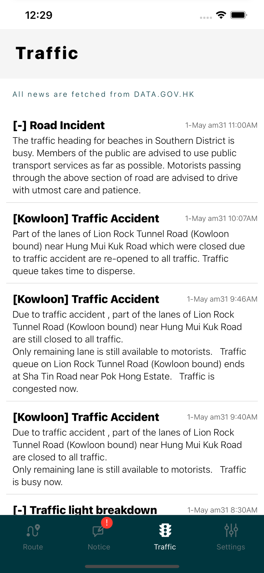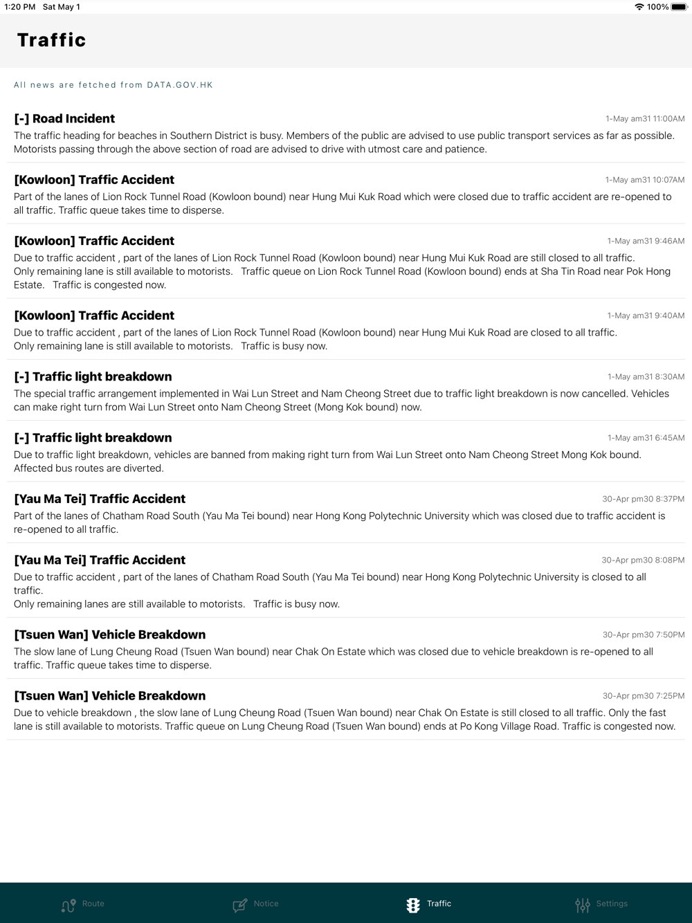 -Latest traffic news