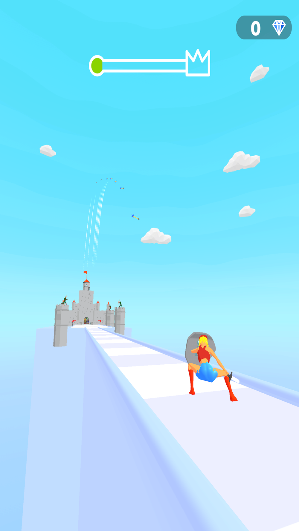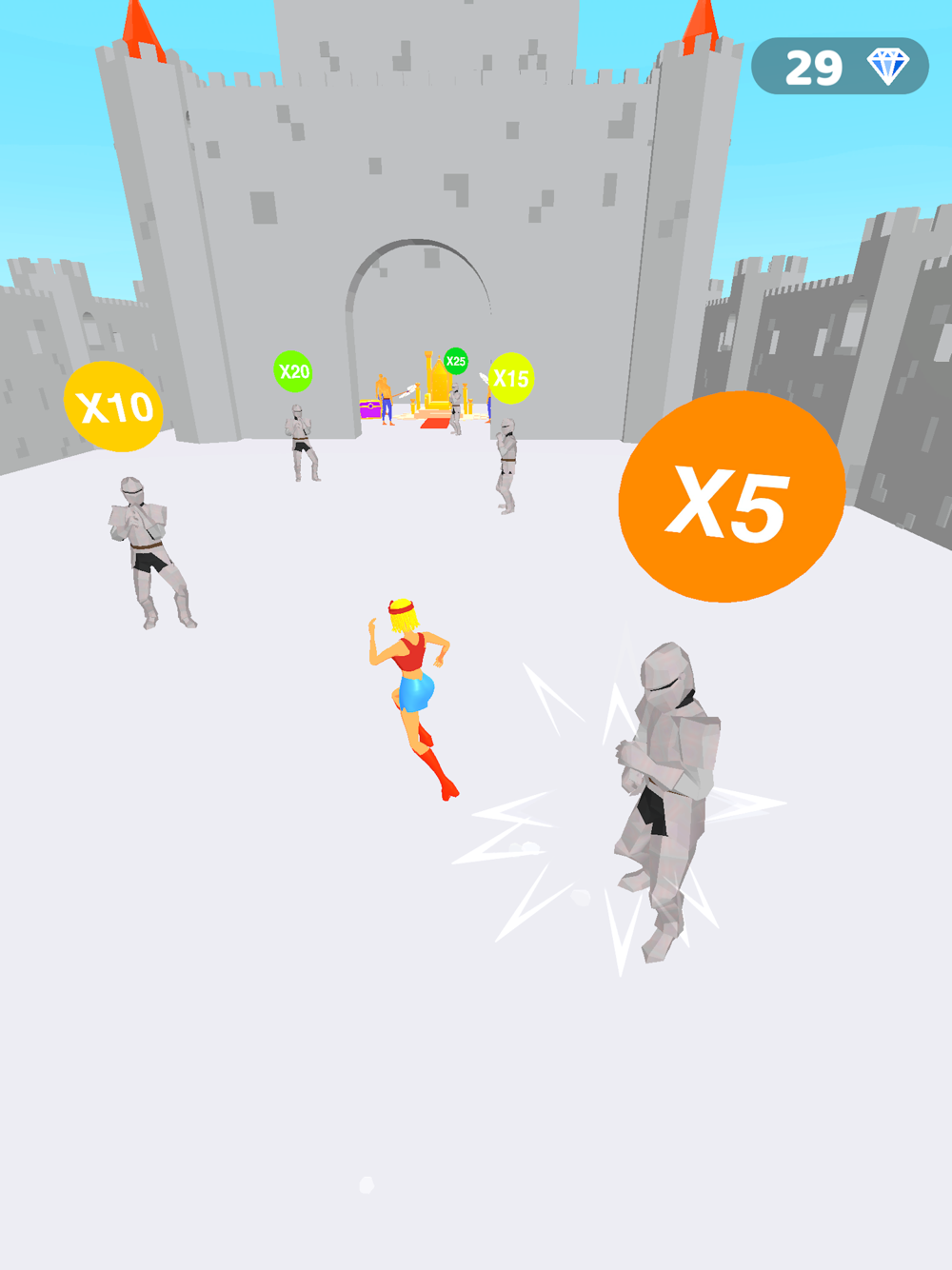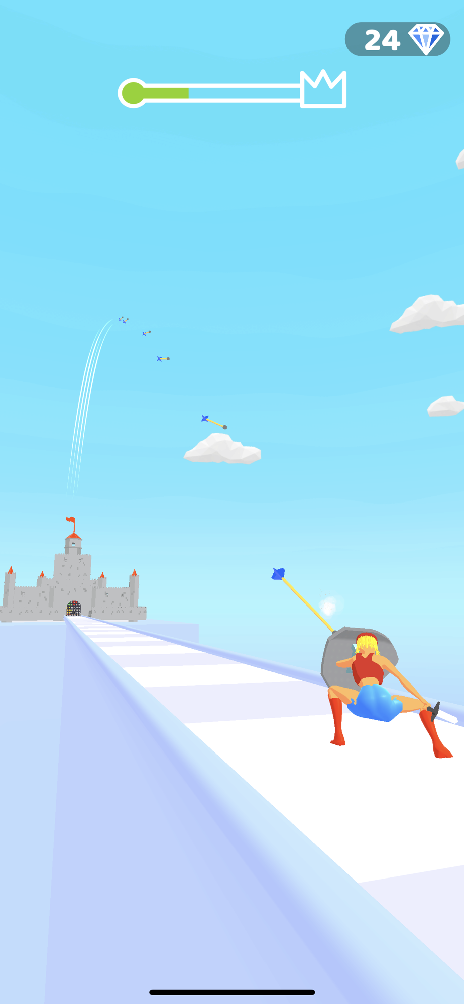 Use your shield to stop flying arrow, destroy anyone that gets in your way and reach the throne.