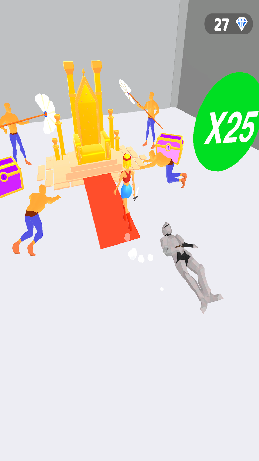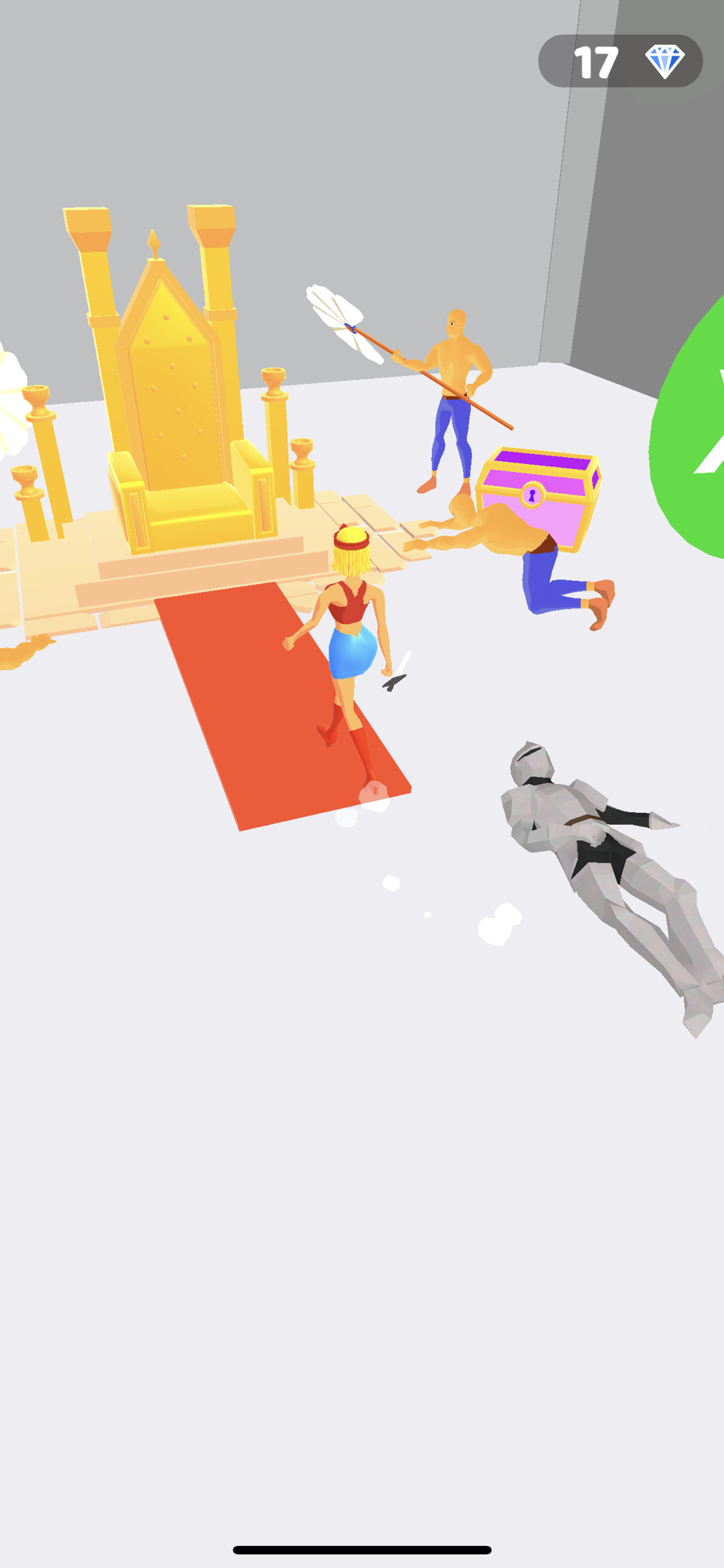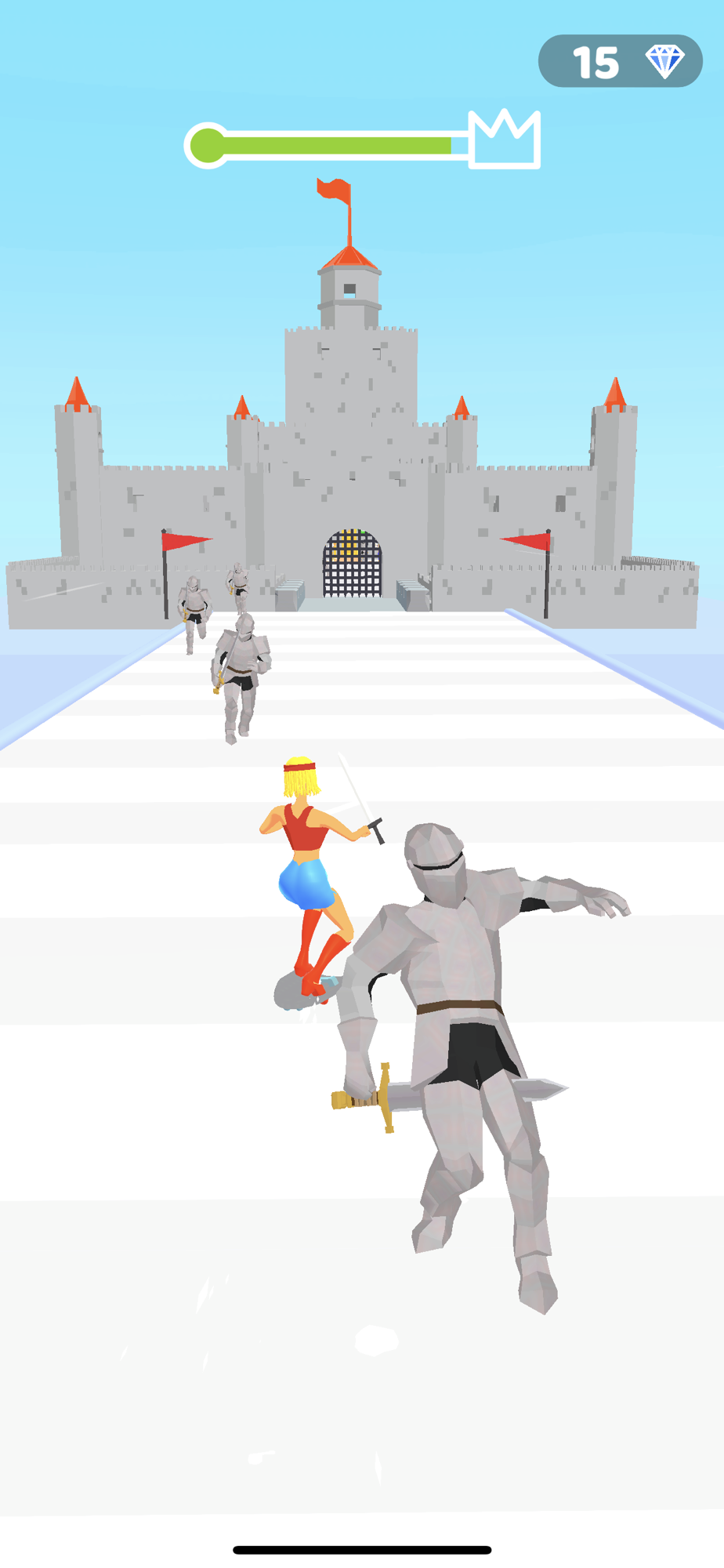 Use your shield to stop flying arrow, destroy anyone that gets in your way and reach the throne.