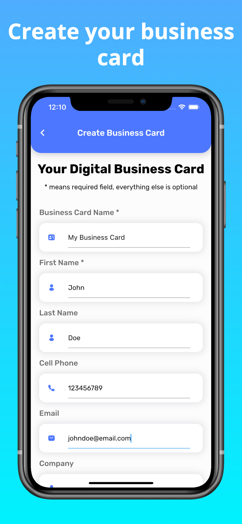 • Create business cards FAST by importing details seamlessly from contacts.