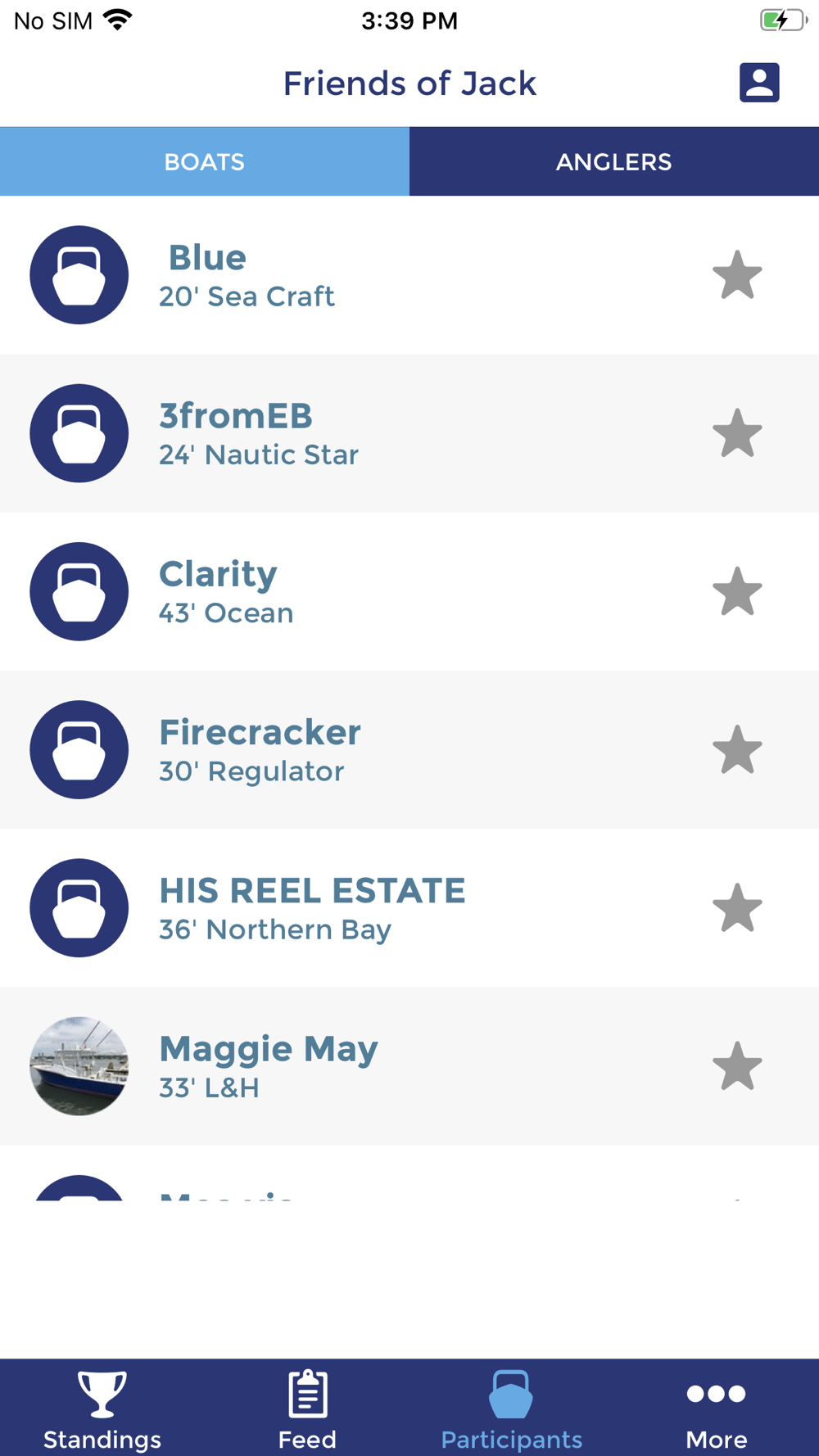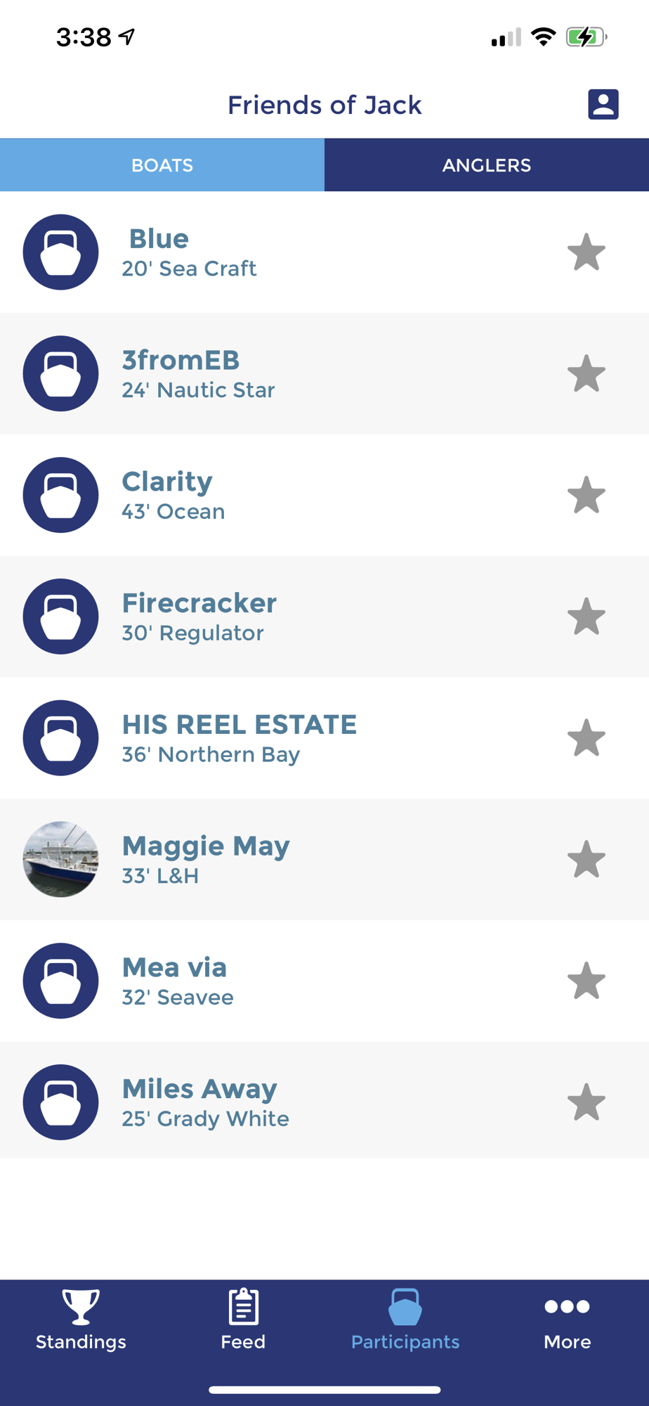 - View all participating boats and anglers.