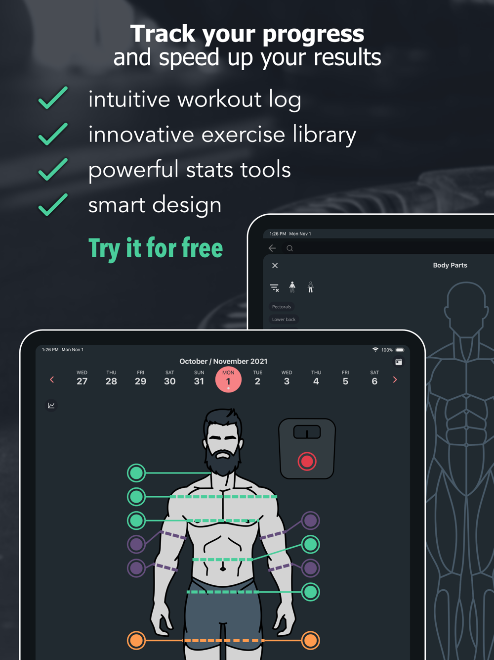 Track your body transformation and see actual results with the powerful body measurement tool. Focus on your weak points to build the body you've always dreamt of.