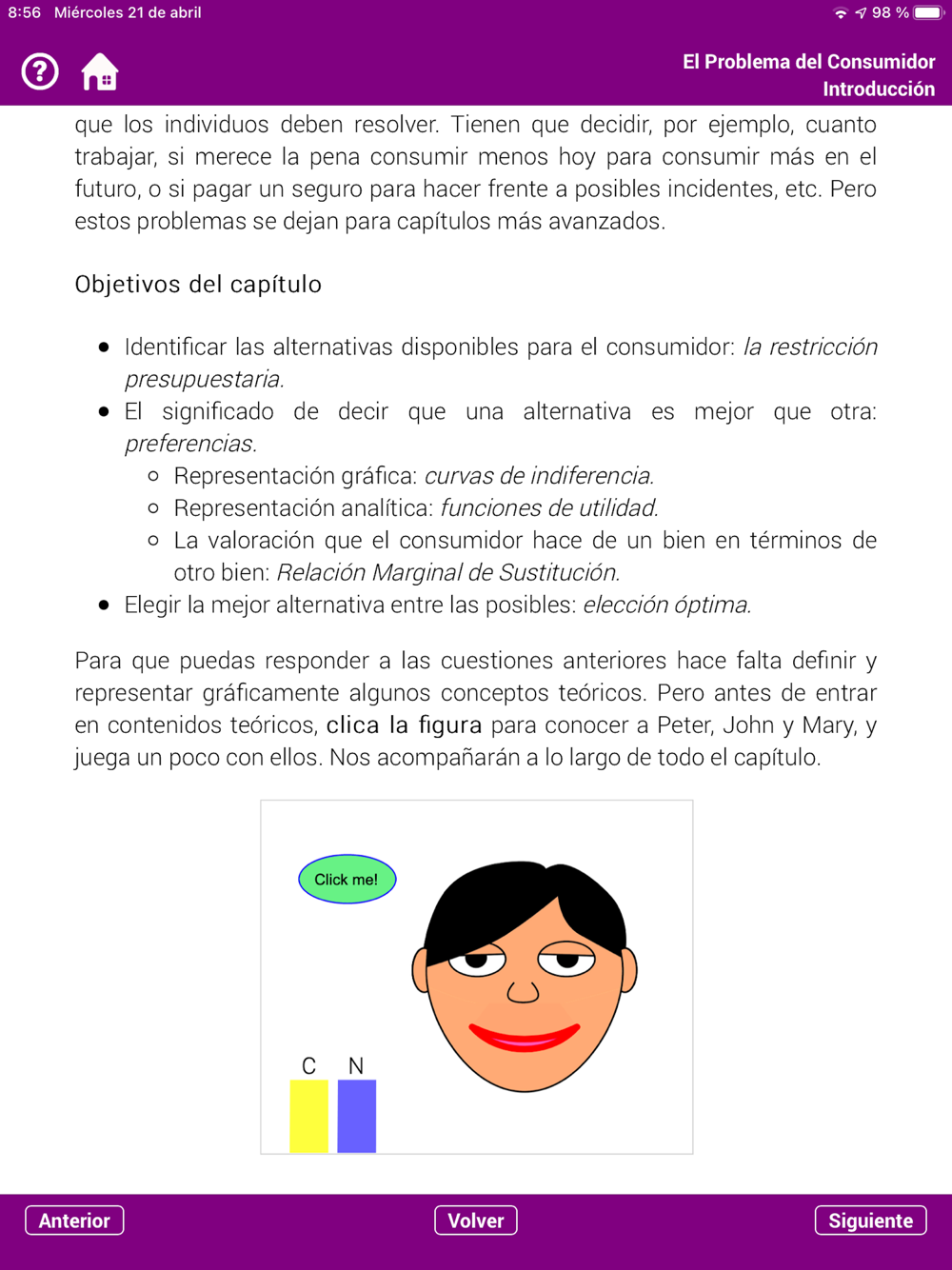 ¿Qué encontrarás aquí? "El Consumidor" Teoría interactiva con gráficos interactivos integrados, explicaciones sencillas partiendo de cero. Encontrarás ejemplos y ejercicios a lo largo del texto, con pistas para resolver por ti mismo pero también con las soluciones y explicaciones detalladas para comprobar cuando lo desees.
