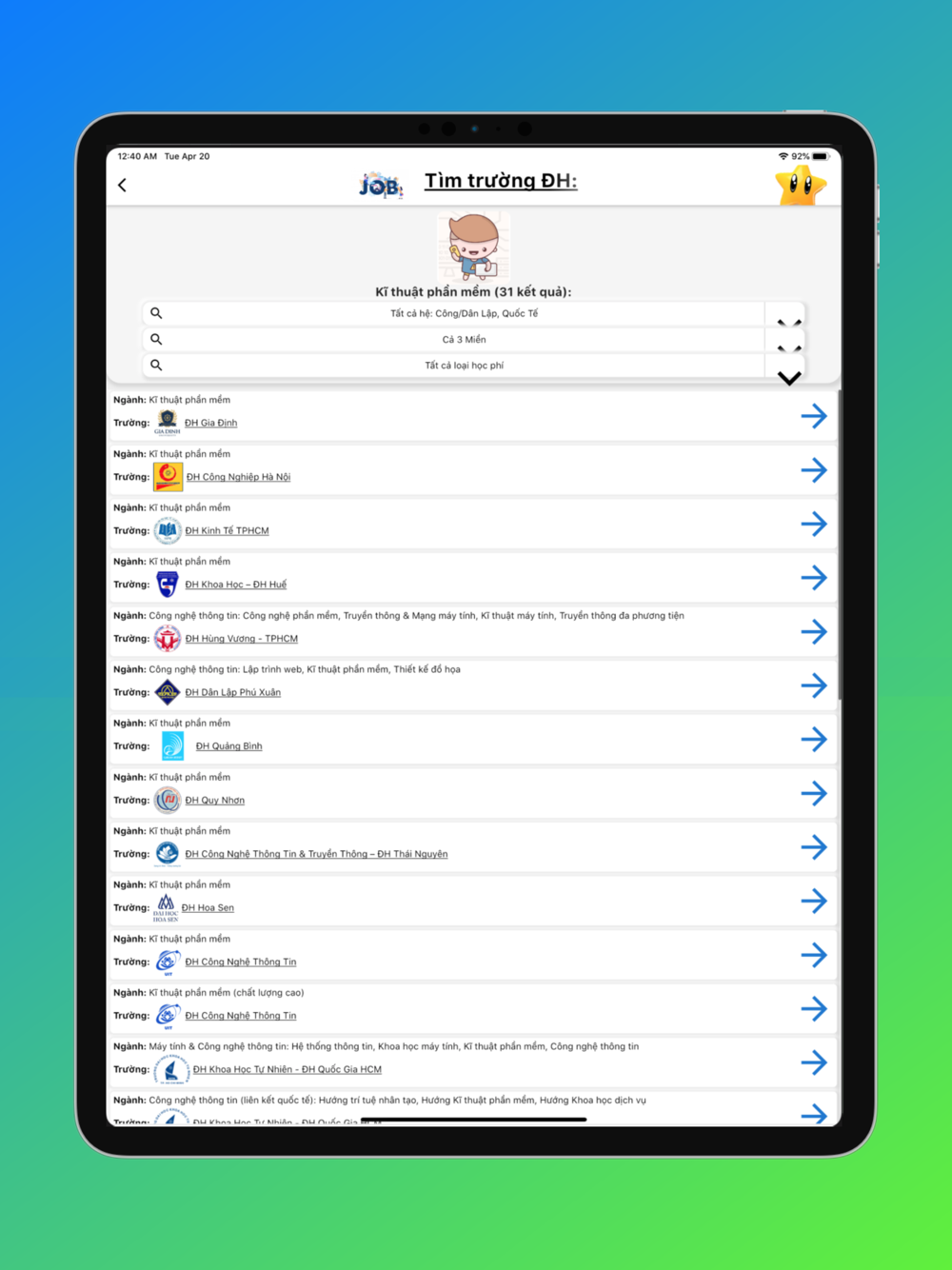 Với ứng dụng hướng nghiệp thông minh này, bạn có tất cả các thông tin về các ngành học, trường ĐH trong tầm tay.