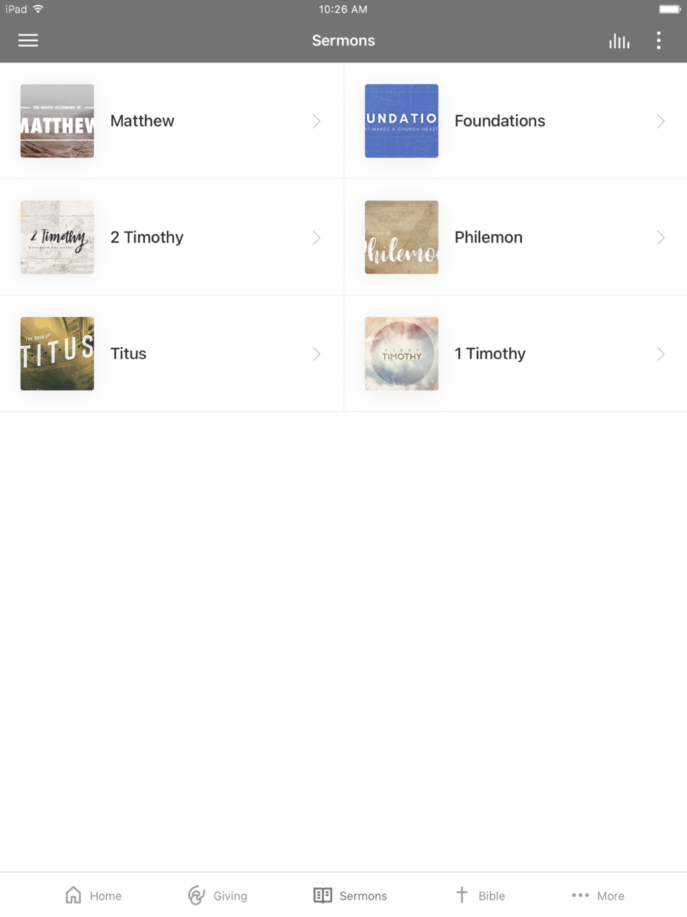 This app will help you stay connected with the day-to-day life of our church. With this app you can: watch or listen to past messages; stay up to date with push notifications; share your favorite messages, and download messages for offline listening.