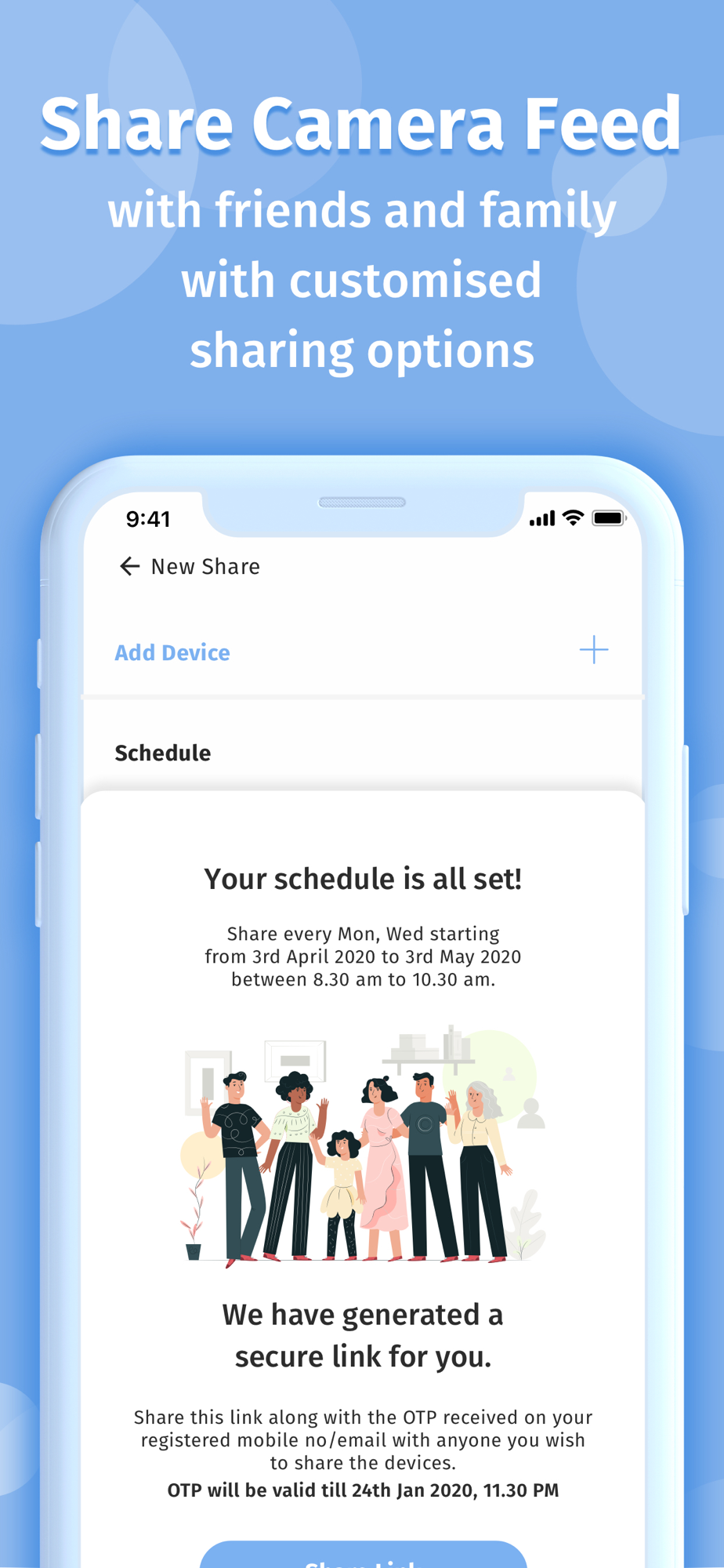 Securely share your Camera's with your loved ones, choose the permission or grant complete access, let them view all day or for a fixed time, it's all under your control.