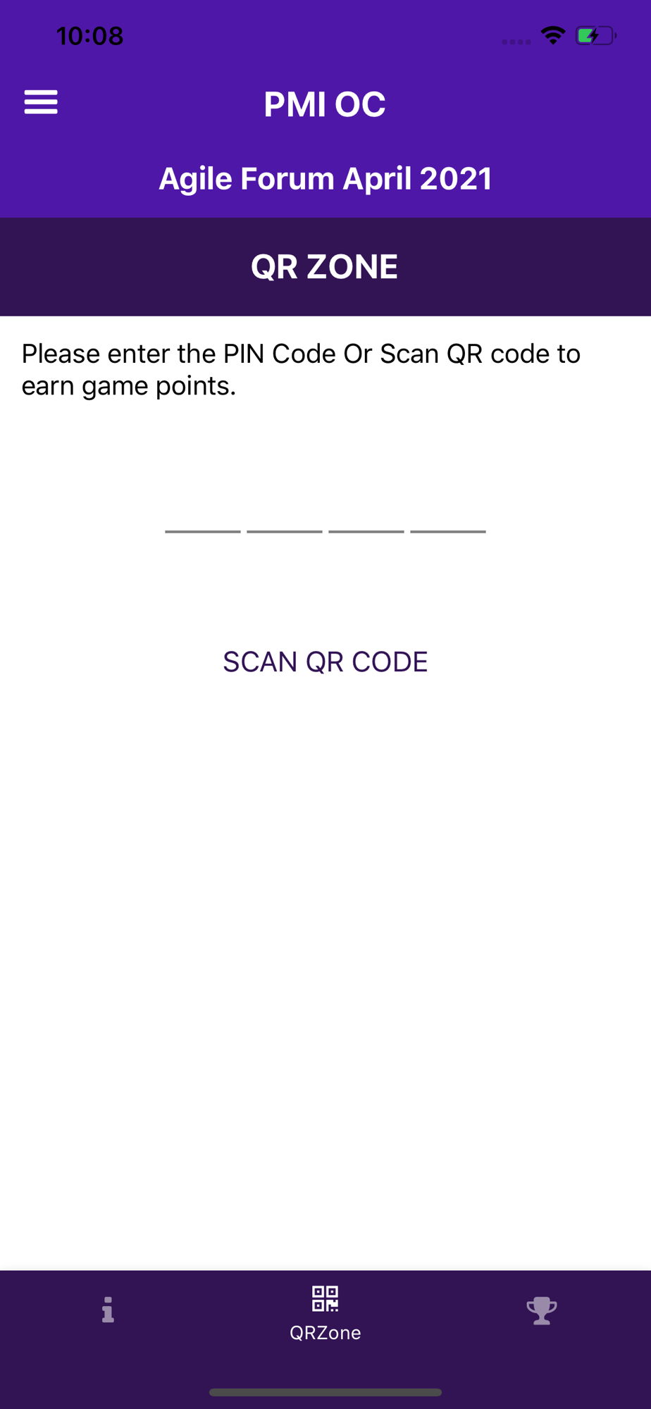 The app also facilitates interaction between attendees and sponsors at conference events via the game center. The chapter assigns point values to various sponsors or other designated code holders. Participants earn points by engaging with sponsors and code holders to access their QR or numeric code. The chapter can then reward prizes to the attendees who gather the codes to earn the most points.