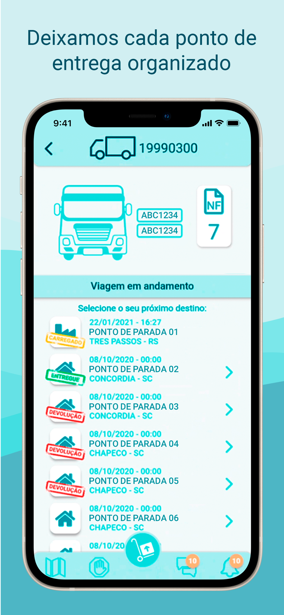 * Registros de anomalias (controles de entregas, devoluções parciais e totais);