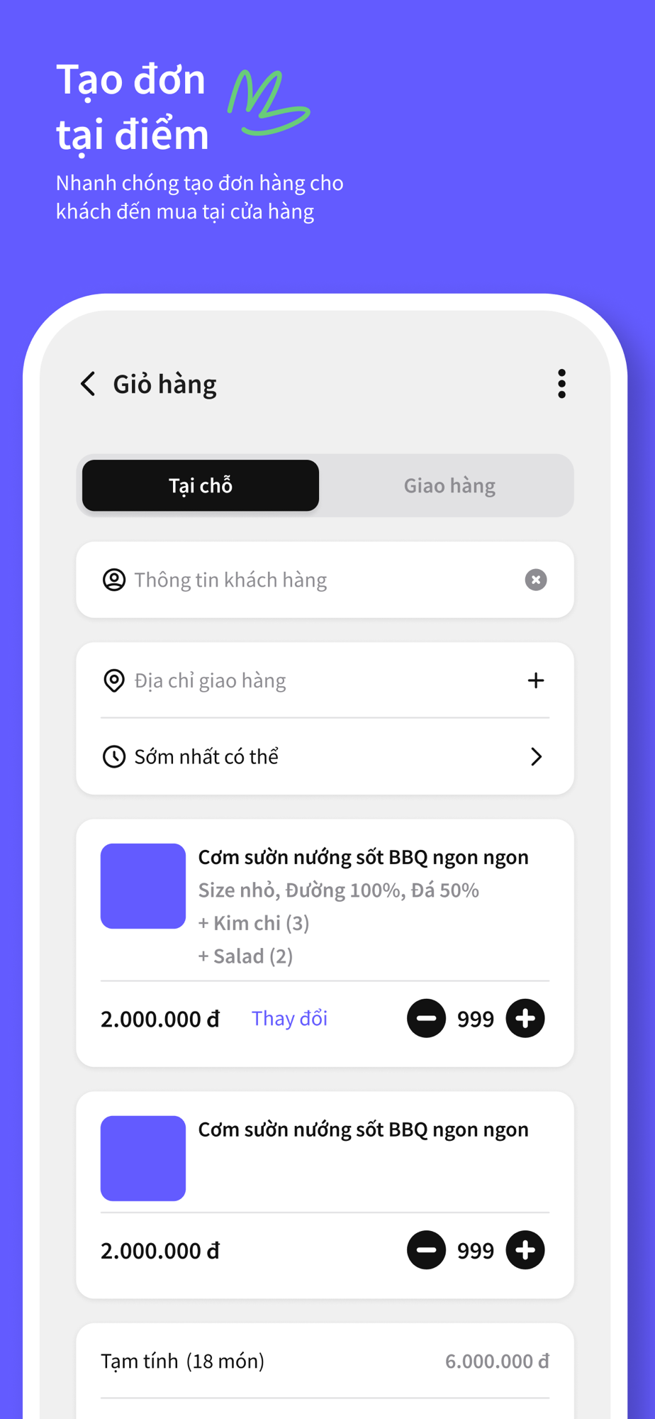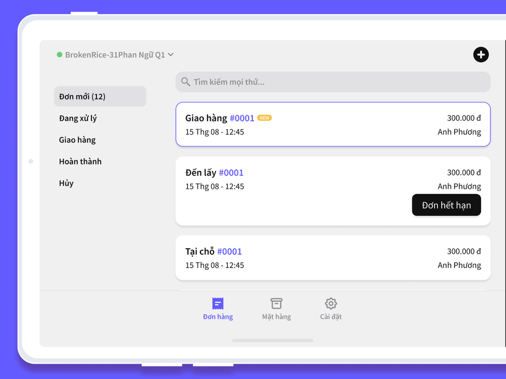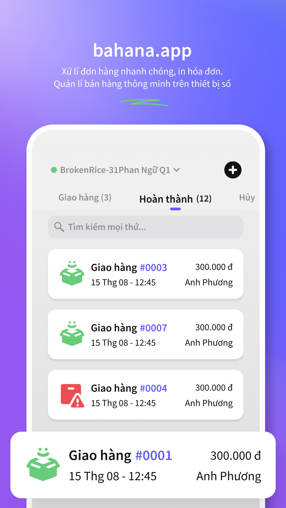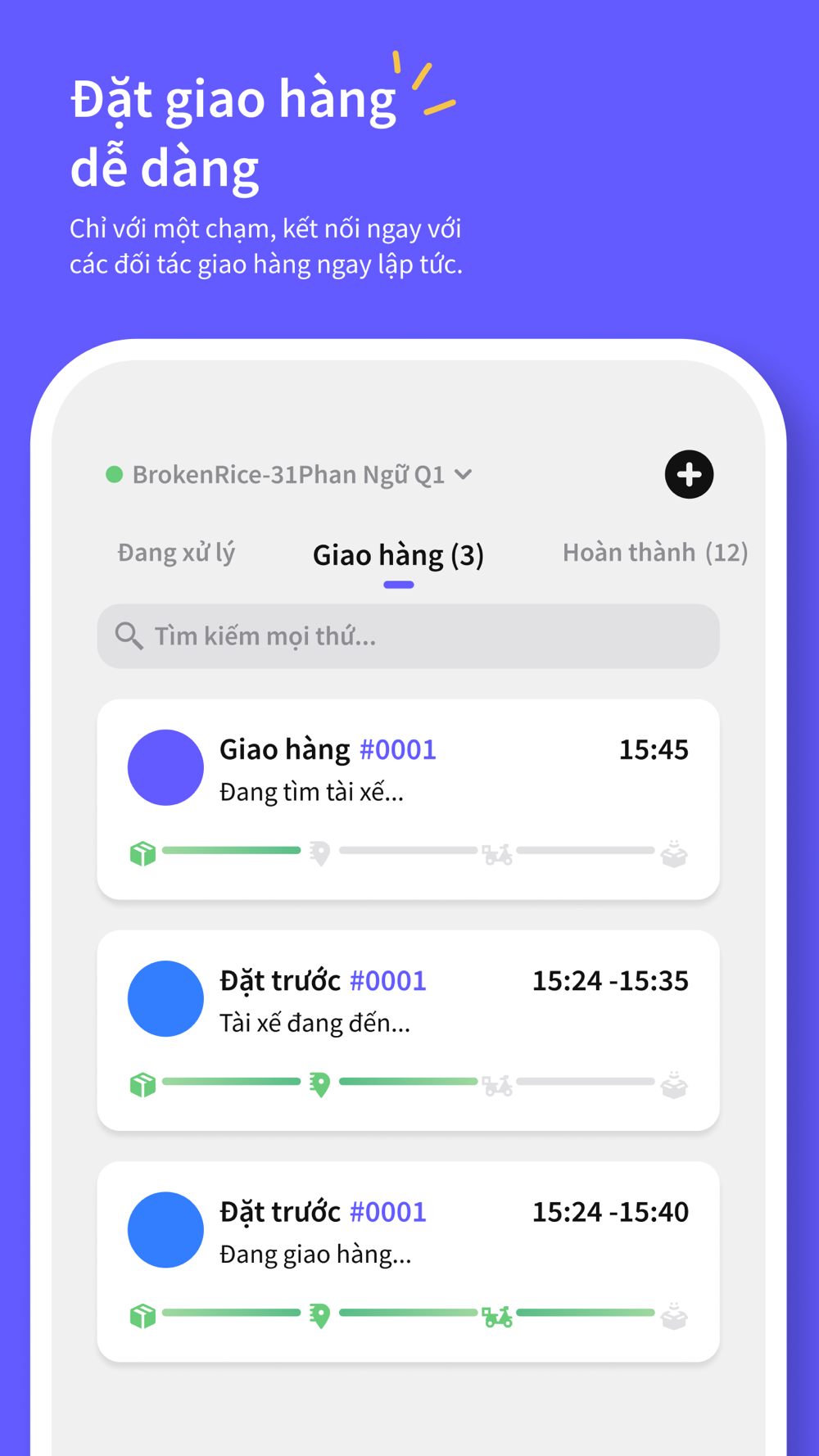 Bạn đang bán hàng online? Ứng dụng sẽ giúp bạn quản lý đơn hàng một cách tiện dụng nhất. Đơn báo ngay lập tức khi nhận được yêu cầu đặt hàng. Xử lý đơn với một chạm hỗ trợ gọi điện cho khách mua. Đặt giao hàng nhanh chóng thuận tiện dễ dàng theo dõi tài xế theo thời gian thực.