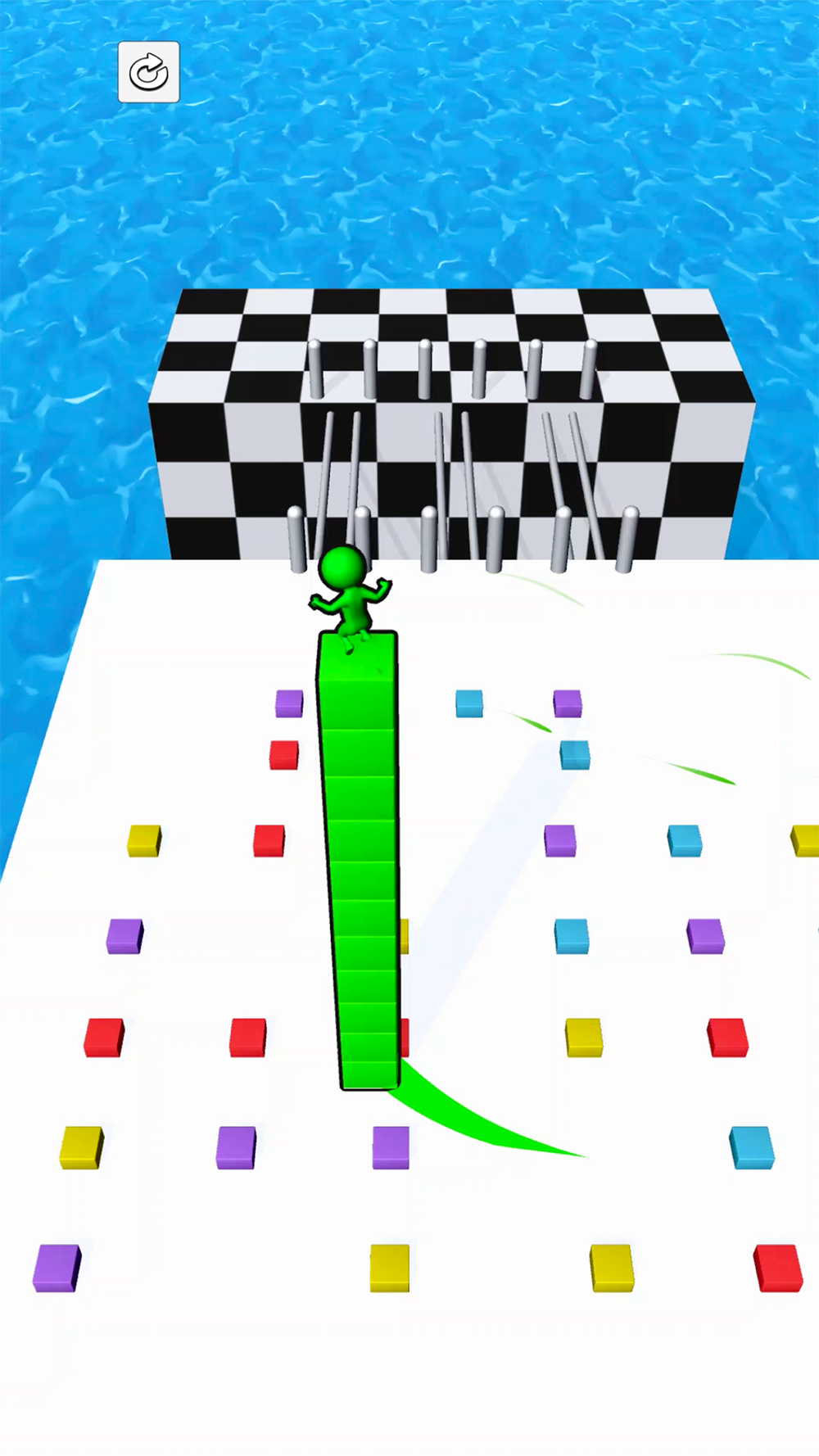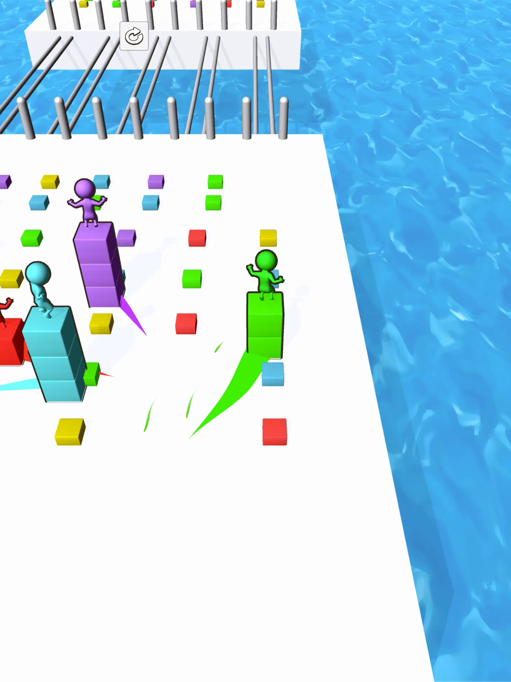 Get a cube on the way and reach the goal faster than your opponent!