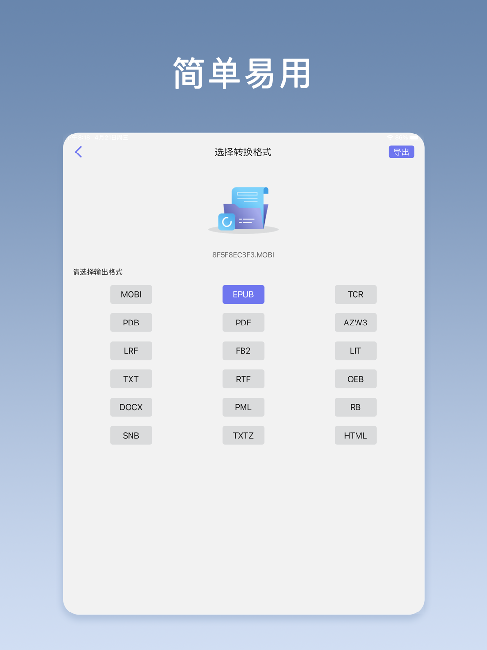 Easily convert your ebook to any common format, you can export to iBooks, Kindle, QQ Reading and other e-book reading apps.