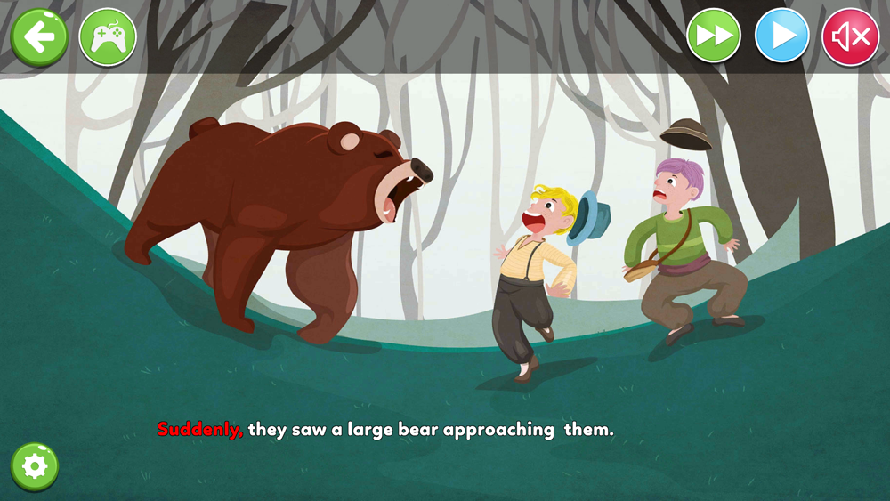 Now the friend on the tree came down and asked his friend on the ground, “Friend, what did the bear tell you?” The other friend replied, “The bear advised me not to believe a false friend.”