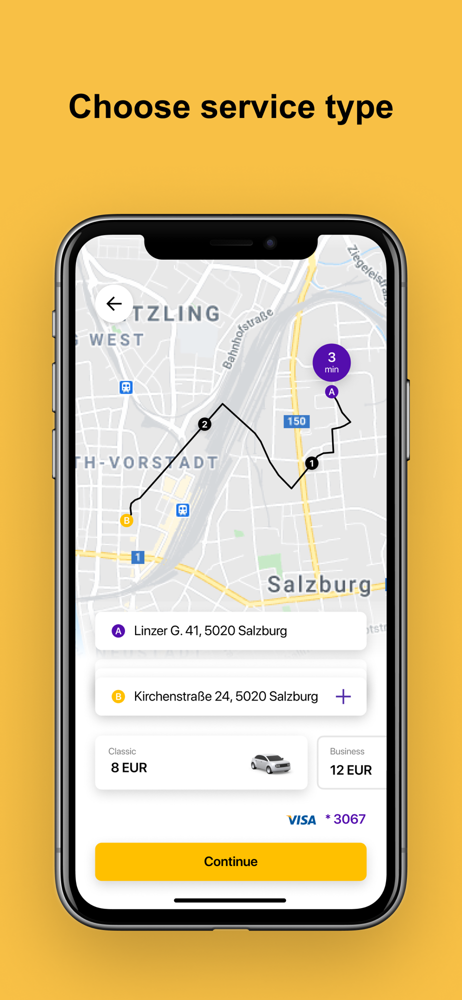 Bringmi is a taxi booking app for rides and travel in Salzburg and surroundings. Book taxi easily, calculate the fare and pay in cash or with card. Numerous ordering options are available.