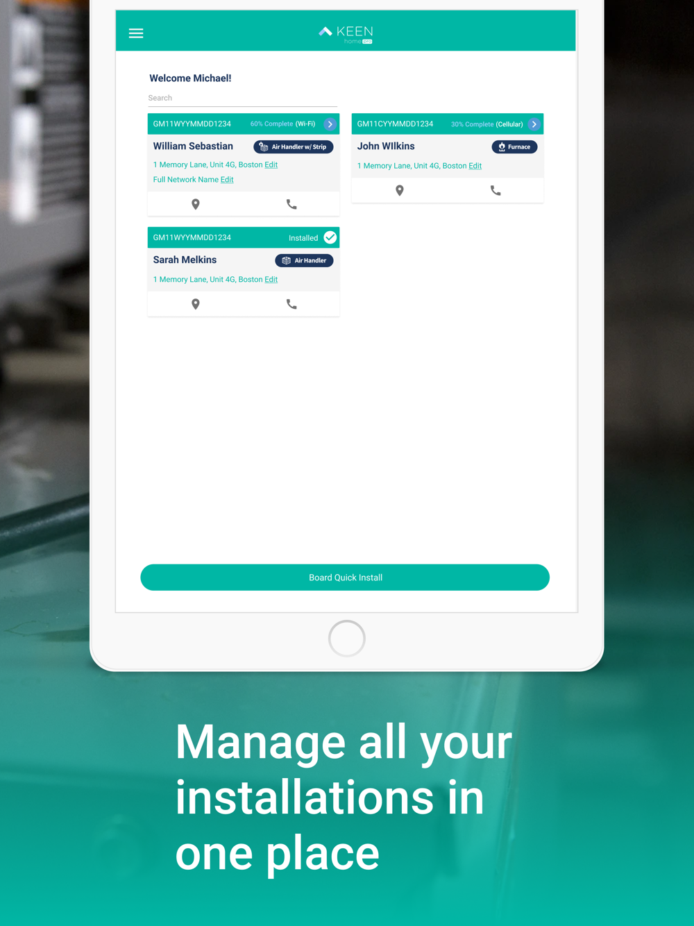 The Keen Pro Platform provides remote monitoring, control, integration, and advanced artificial intelligence capabilities to make an HVAC technician’s job more efficient and productive.